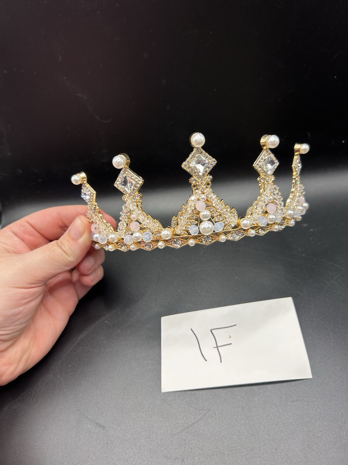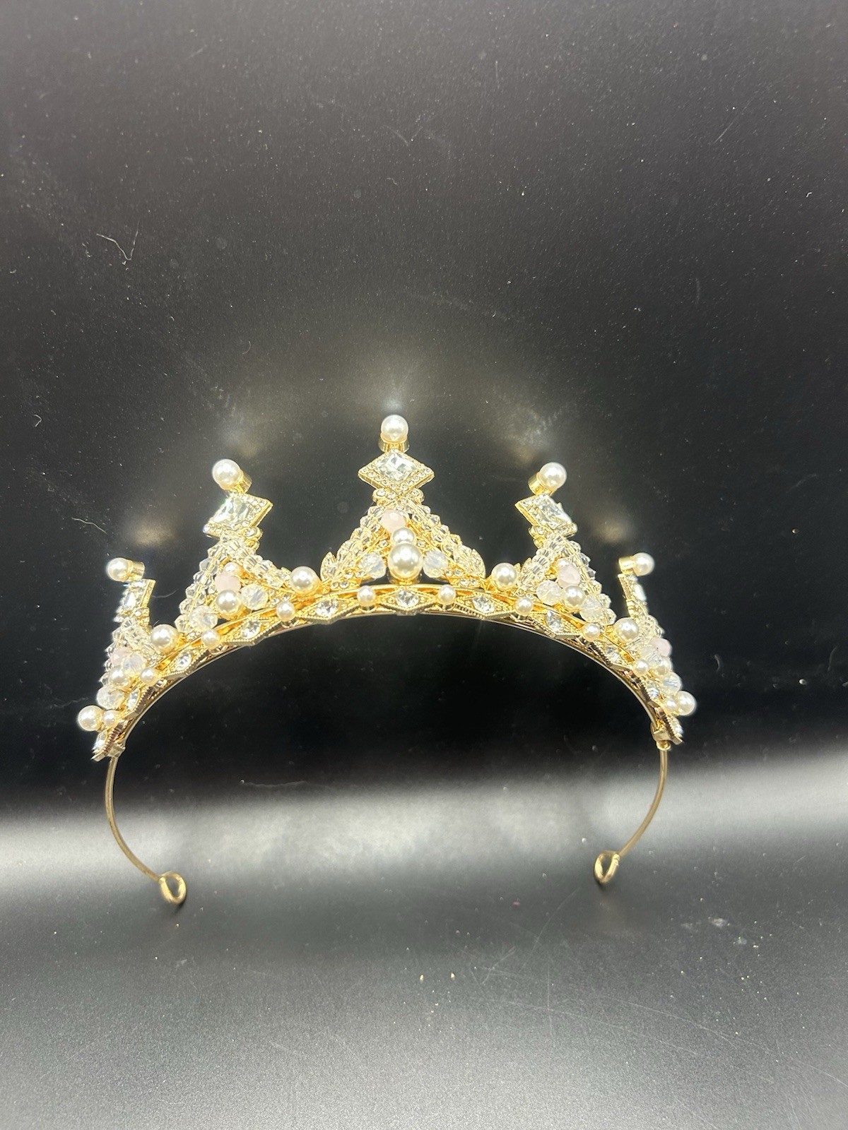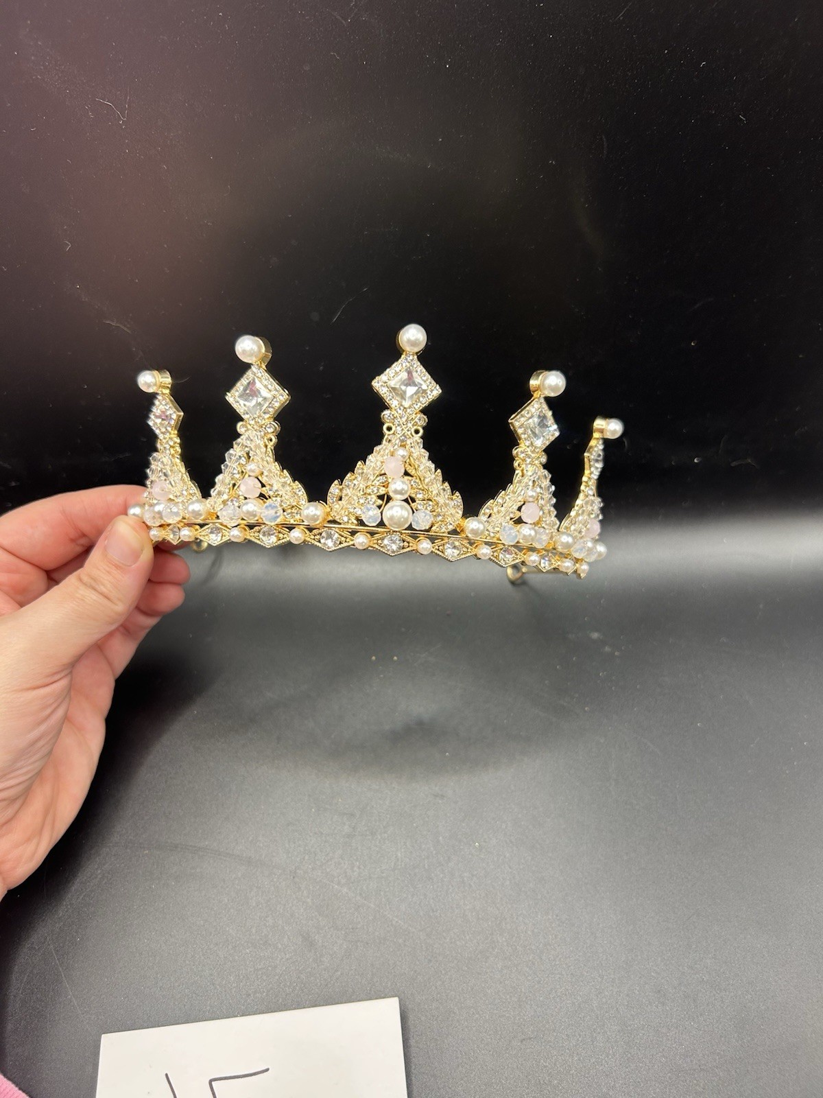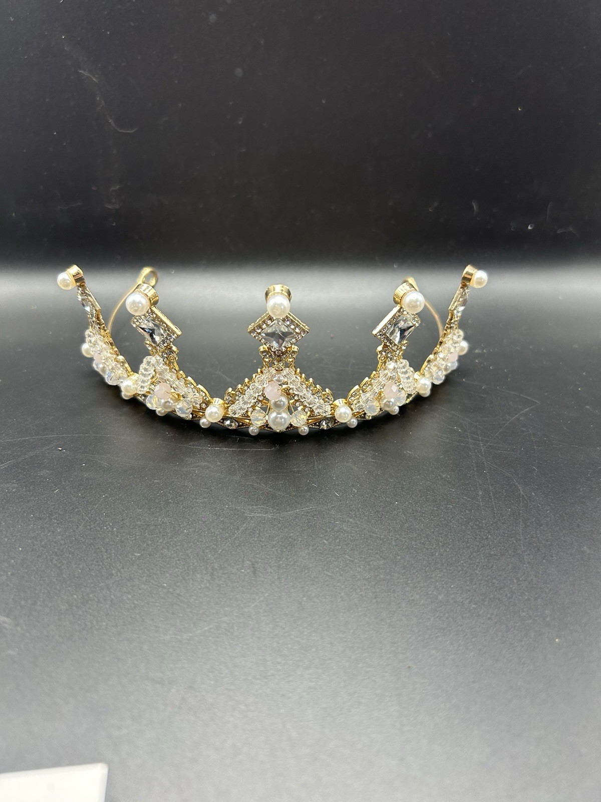 как выглядит Beaded Tiara, Clear Gold Tone Wedding Tiara, Jewelry, Vintage Look Crown 1F фото