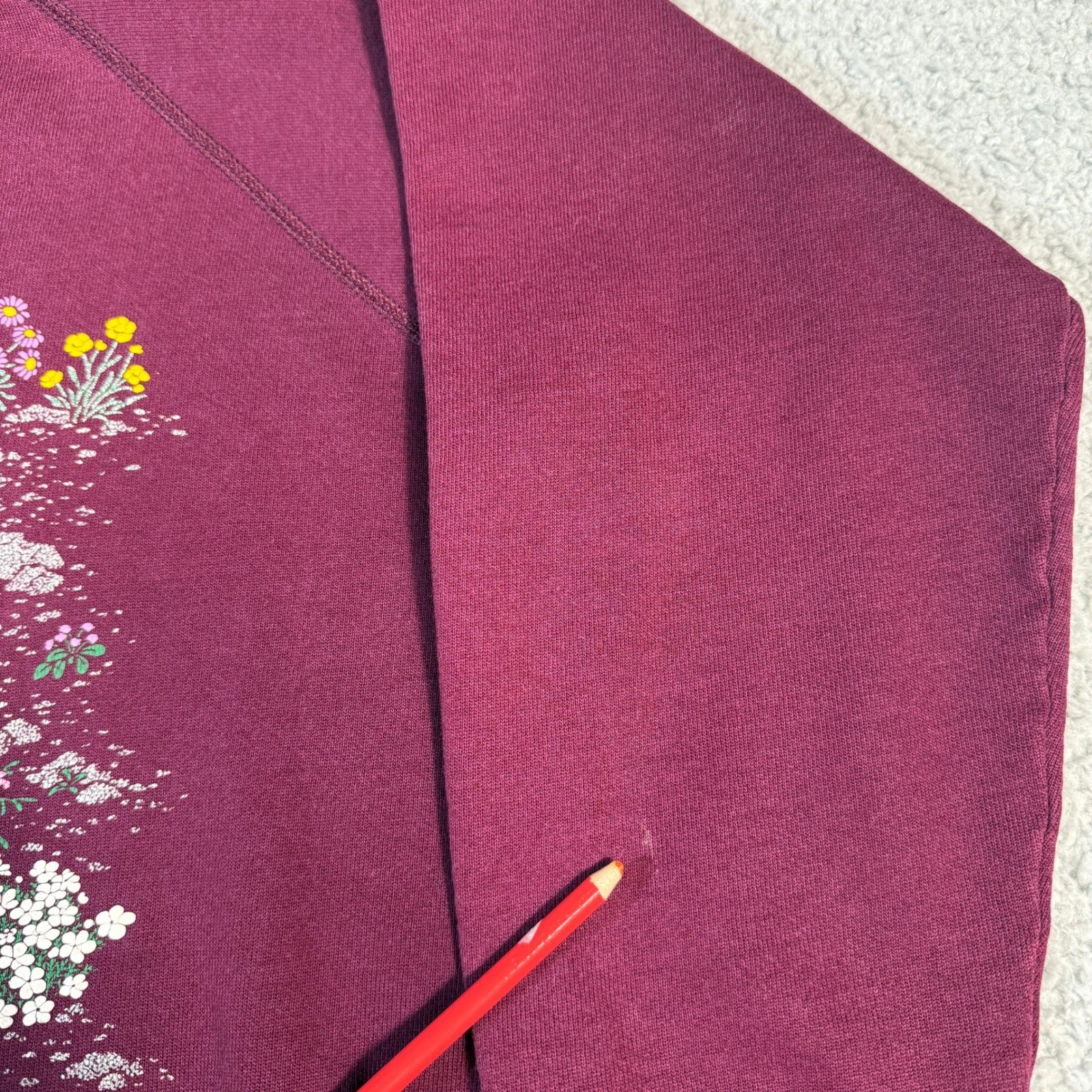 как выглядит Vintage Morning Sun Sweatshirt Size Large Collard Floral Graphic Print Maroon фото