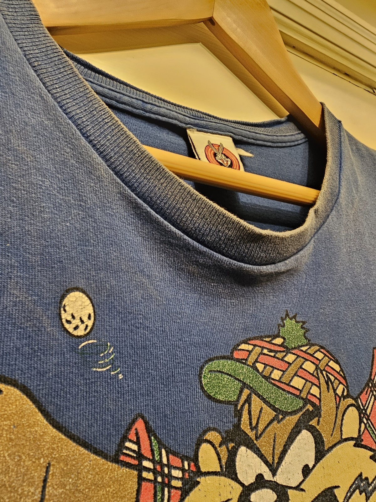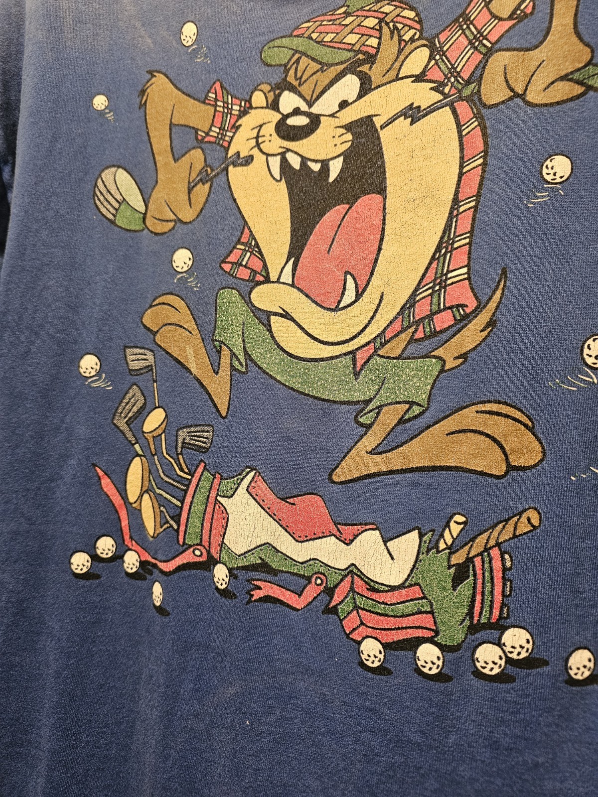Vintage 1997 Looney Tunes Taz Golf Graphic T Shirt Thrashed Faded Size Large