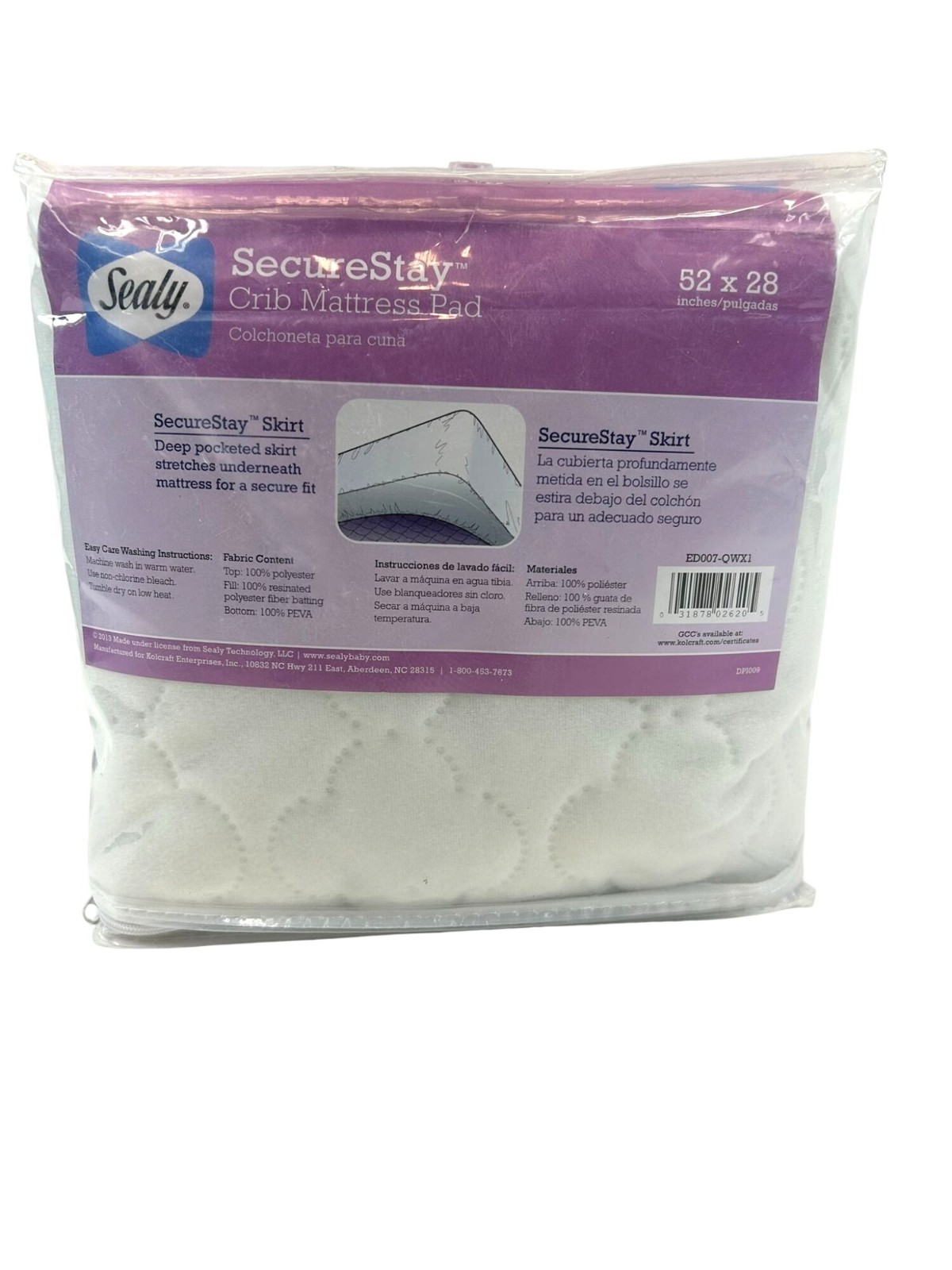 Sealy SecureStay Crib Mattress Pad 52 X 28 With Stretch Skirt 100 Waterproof