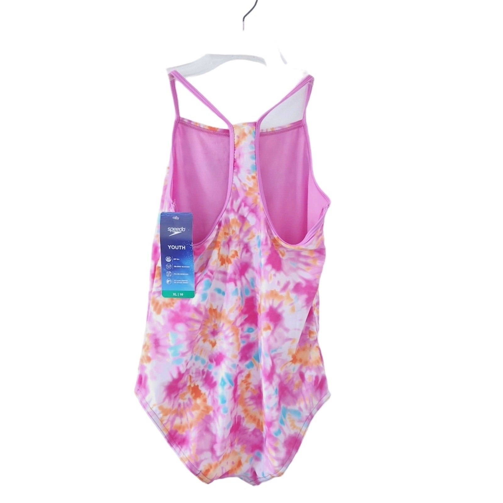 New Speedo One Piece Bathing Suit Girls Size XL 16 Pink Tie Dye Swimsuit