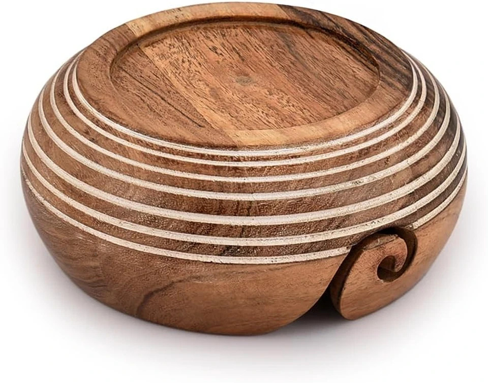 Yarn Storage Acacia Wood Hand Made by Indian Artisans Yarn Bowl for Crocheting