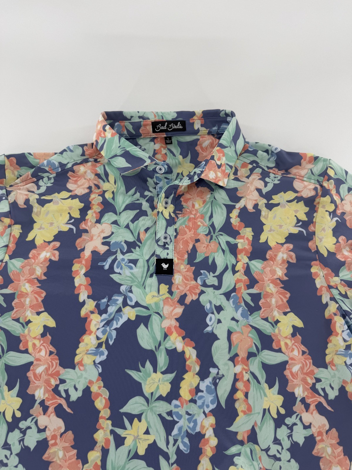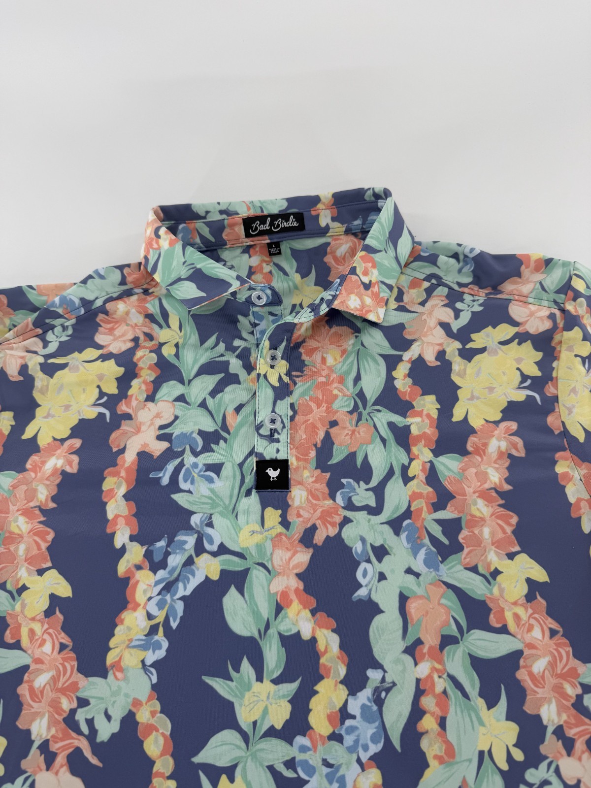 как выглядит Bad Birdie Golf Polo Mens Size Large L Leid Floral Performance Lei Polo New фото