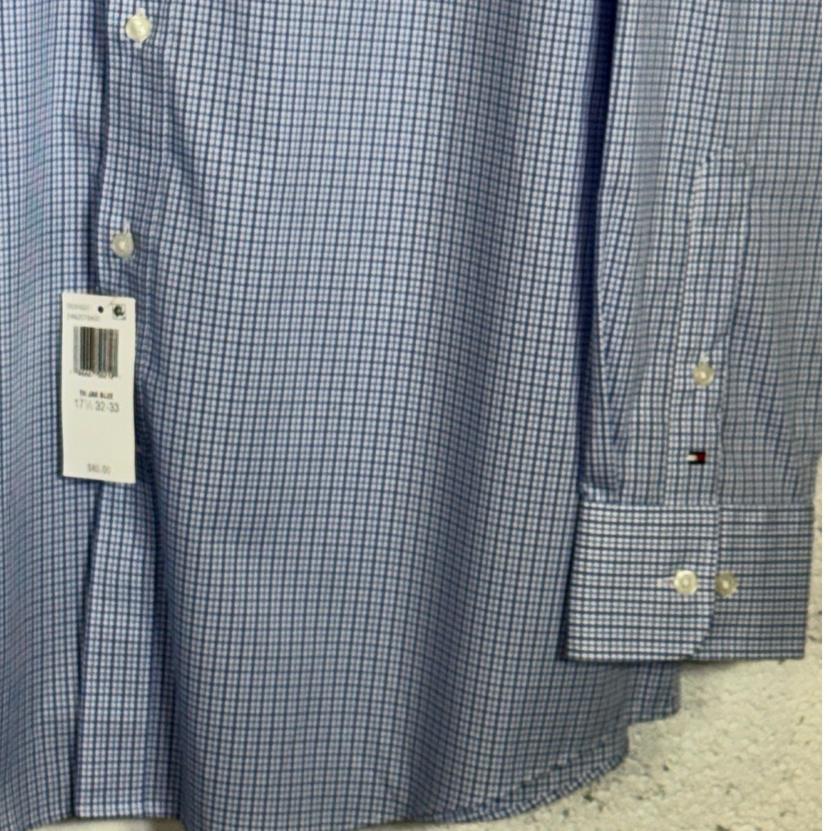 как выглядит Tommy Hilfiger Mens Flex Slim Fit Stretch Twill Dress Shirt Blue 17.5 32/33 85 фото