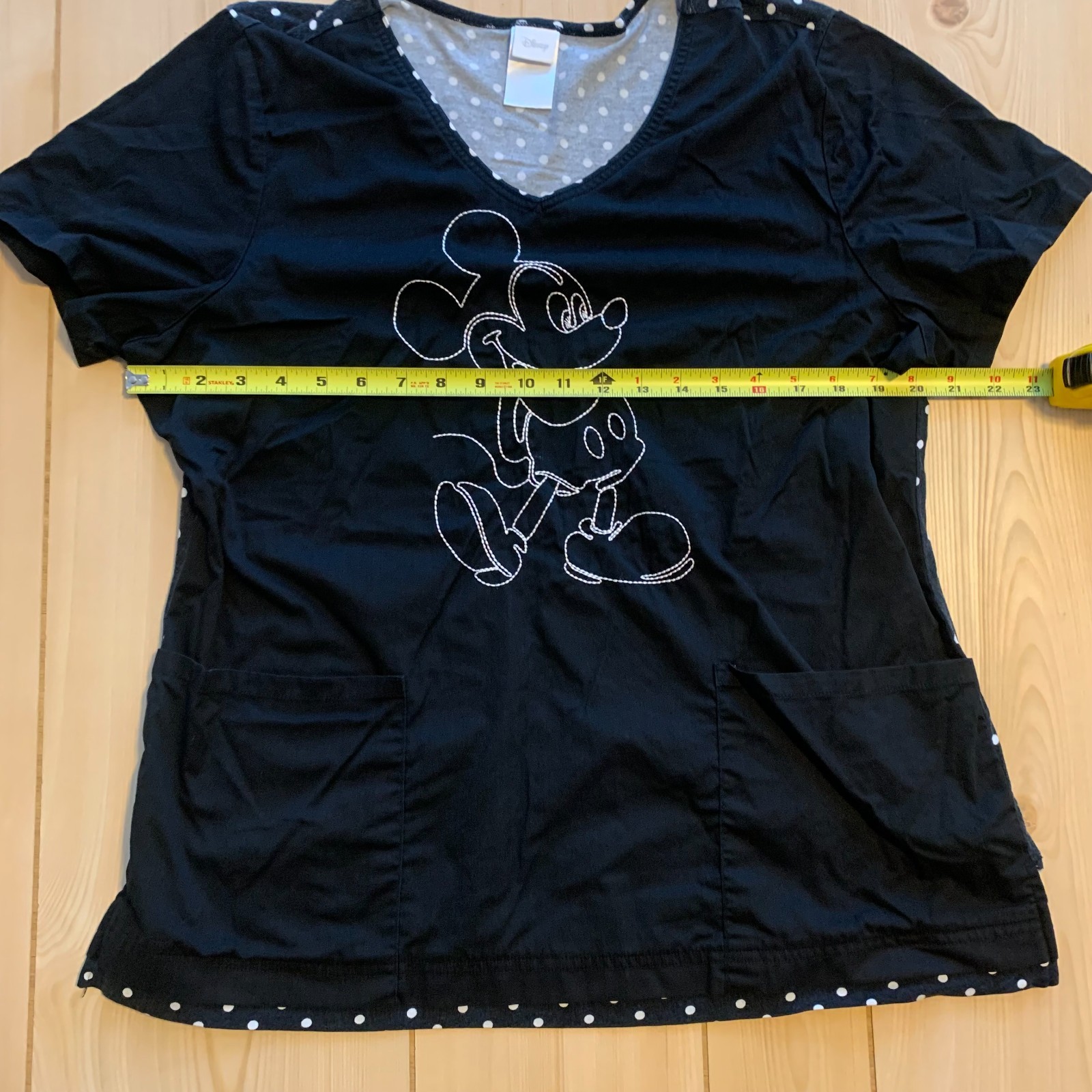Walt Disney Mickey Mouse Polka Dot Black White Women's Scrubs Size L