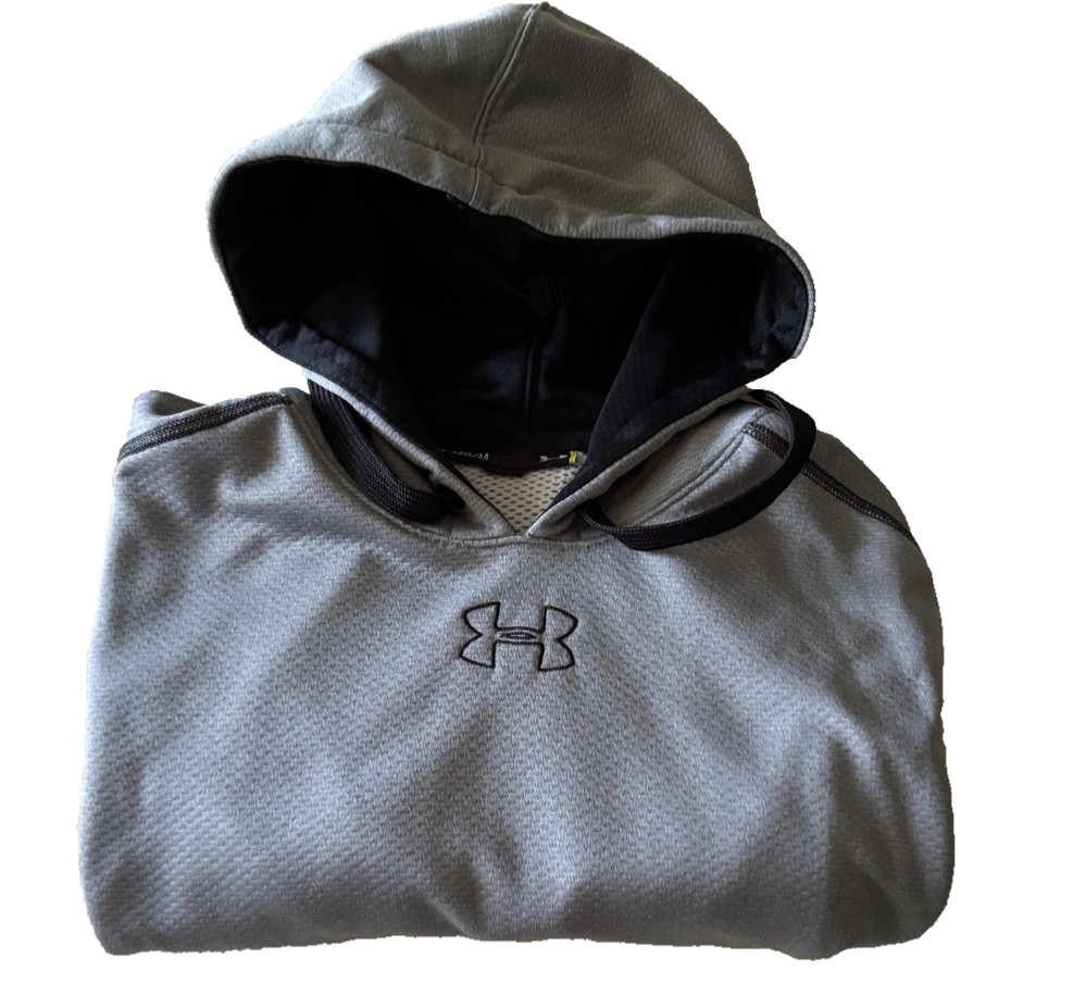 Under Armour Hoodie Mens Medium Gray Pullover Sweatshirt Logo Athletic Loose Fit