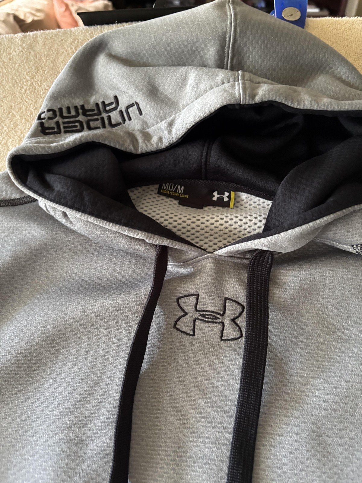 как выглядит Under Armour Hoodie Mens Medium Gray Pullover Sweatshirt Logo Athletic Loose Fit фото