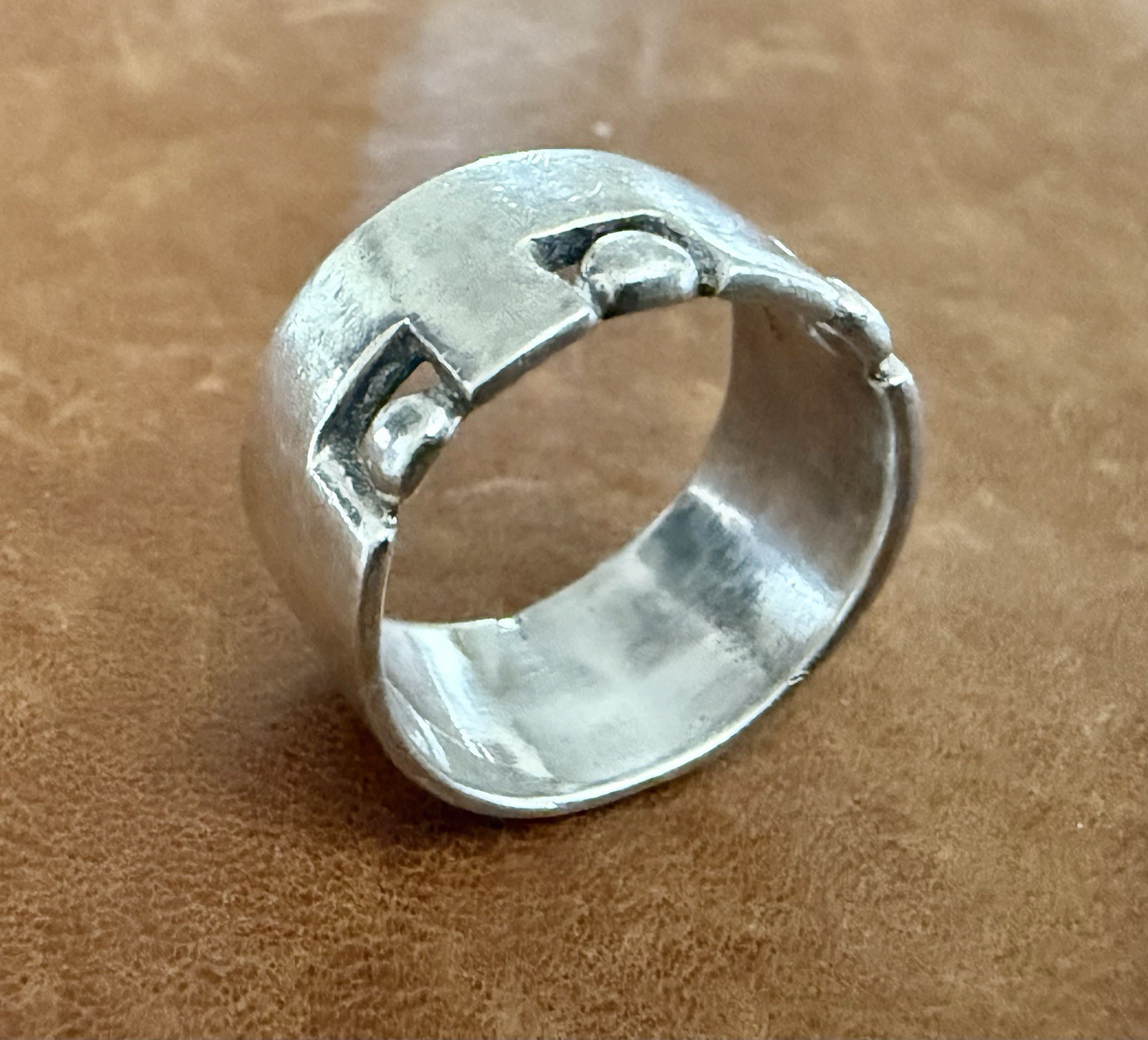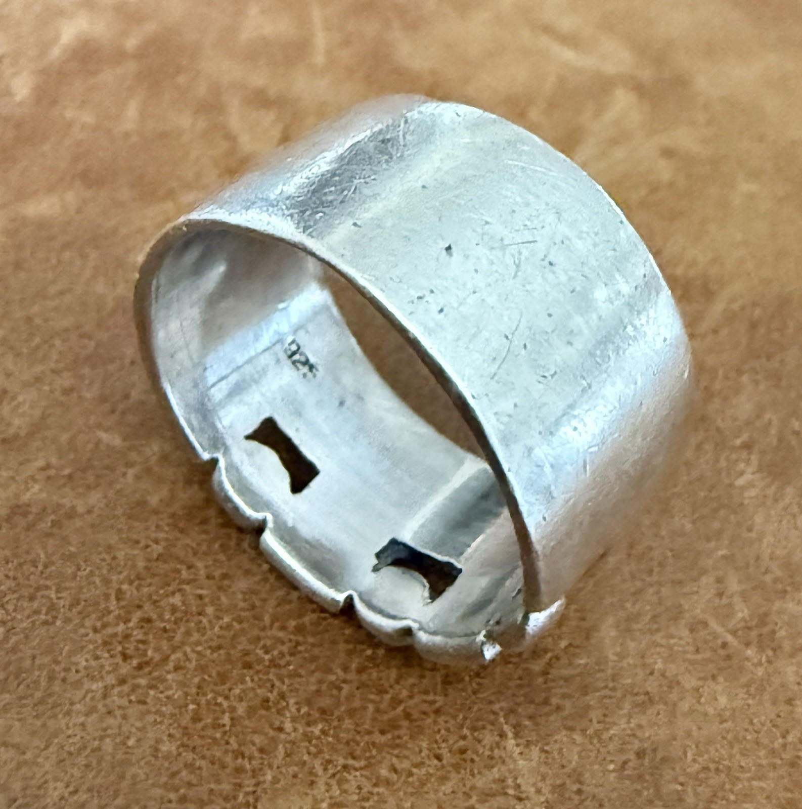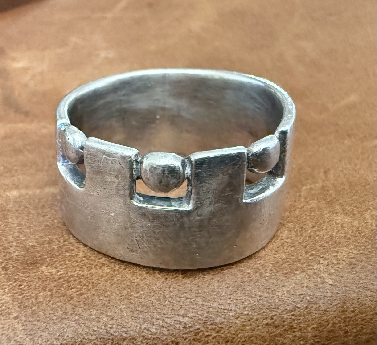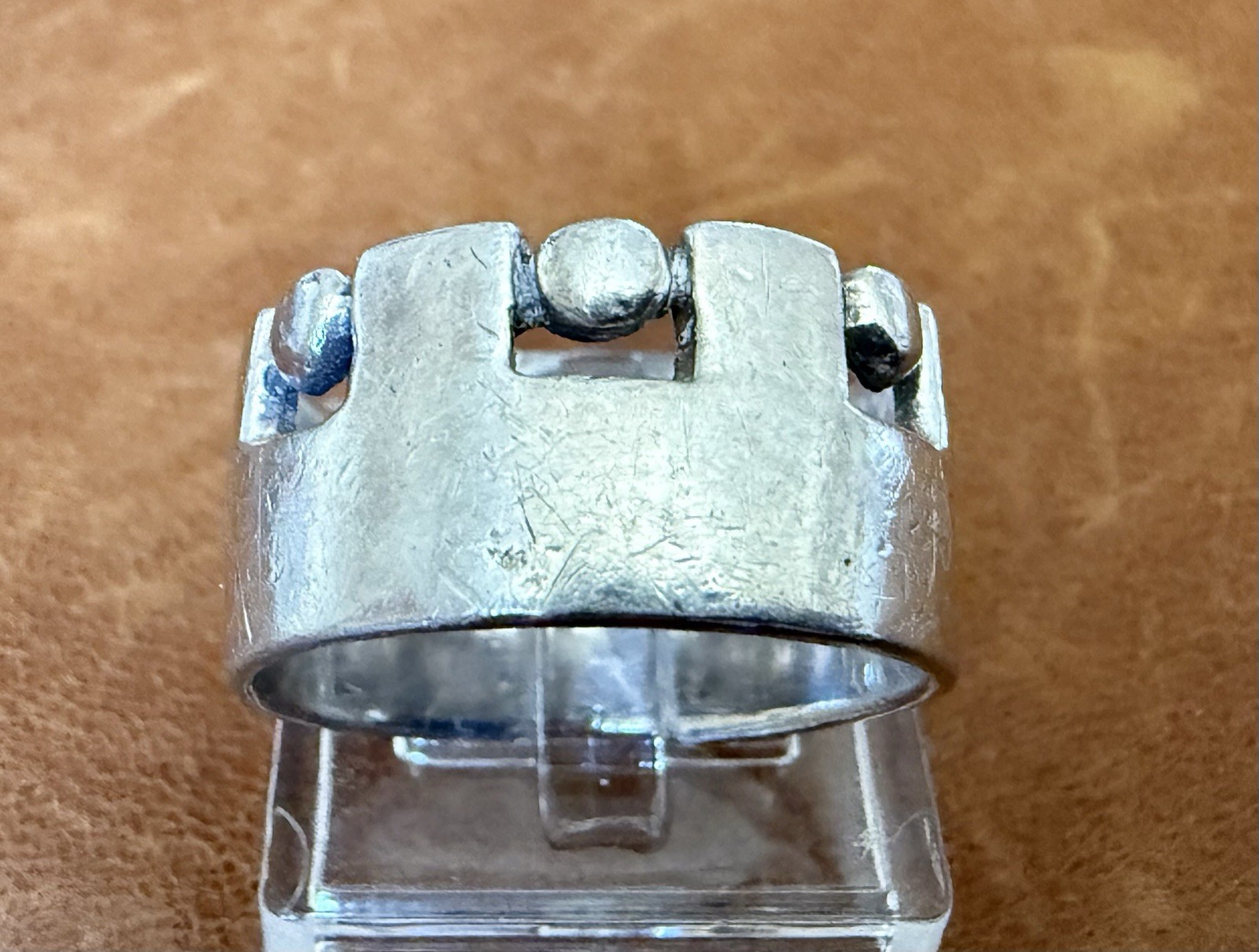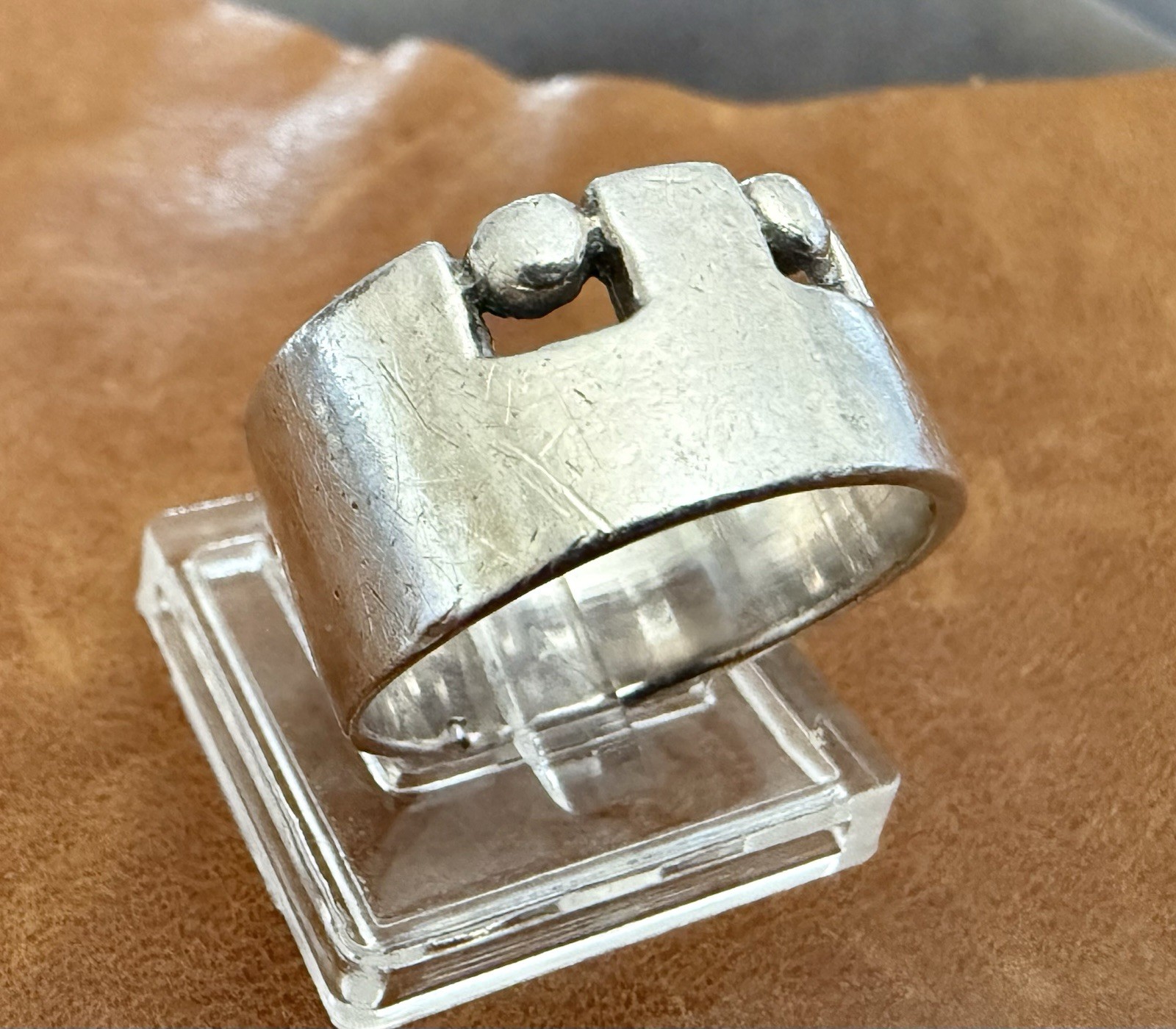 Vintage 925 Sterling Silver 3 Silver Beads Design 10mm Wide Band Ring Size 7.5