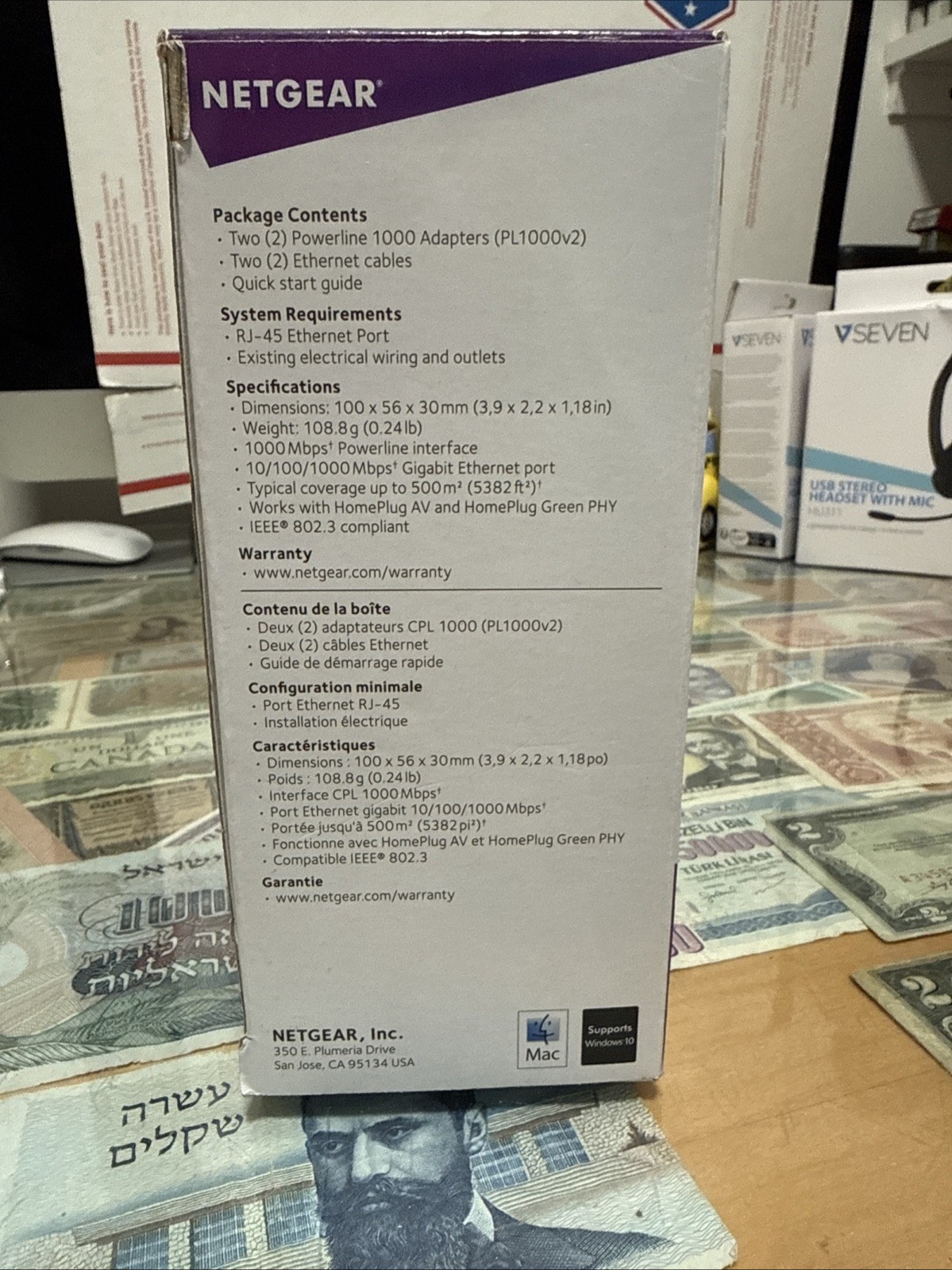 NETGEAR 1000 Powerline adapter Kit Mb Wallplug 1 Gigabit Ethernet Ports PL1000V2