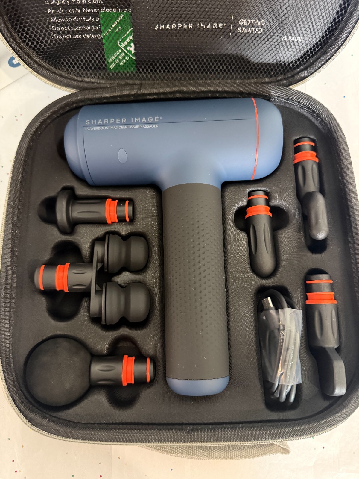 как выглядит Sharper Image Powerboost Max Percussion Massage Gun 6 Attachments 7 Speeds фото
