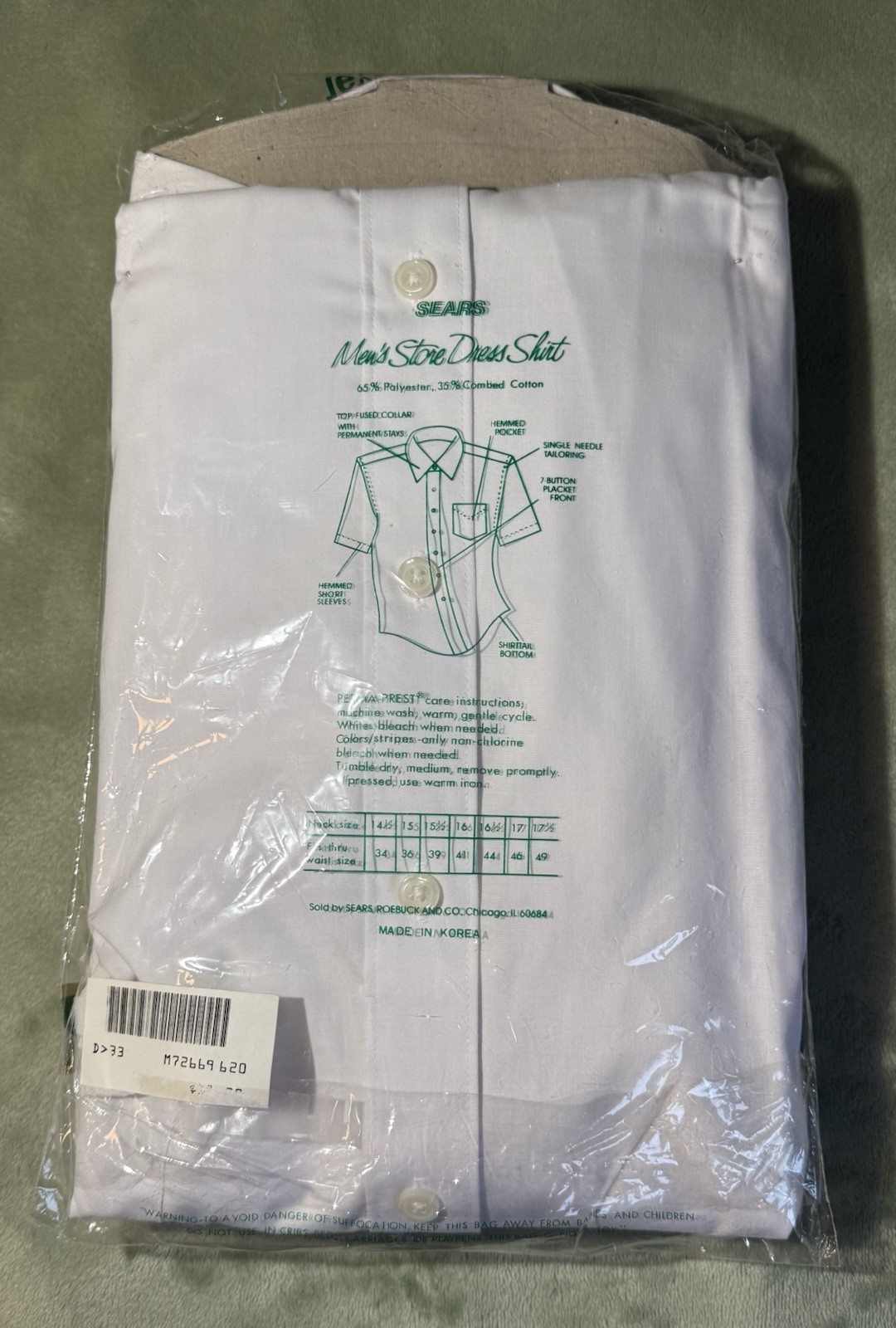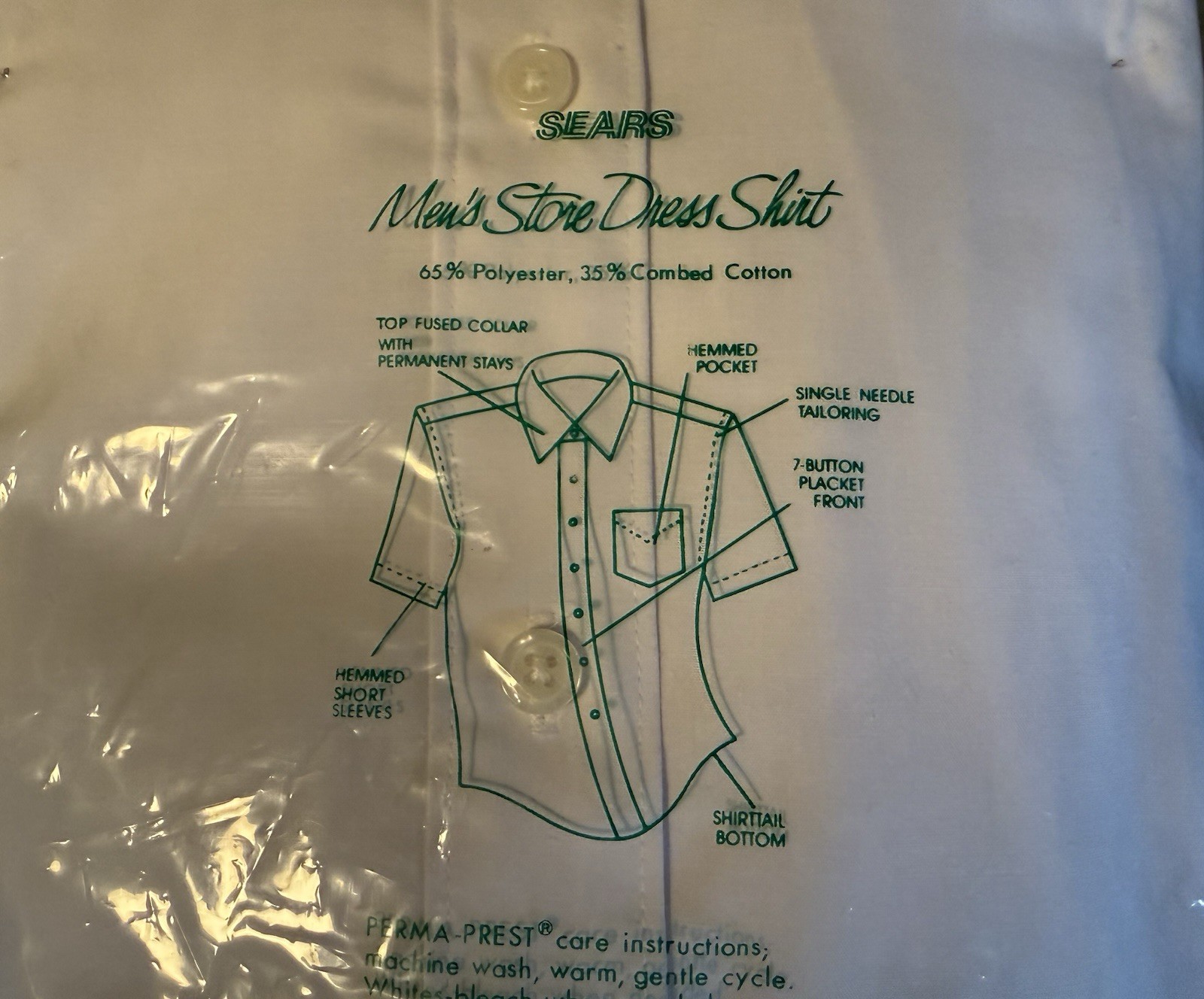 как выглядит New Vintage Sears 16-1/2 White Mens Store Perma Prest Button SS Dress Shirt NIP фото