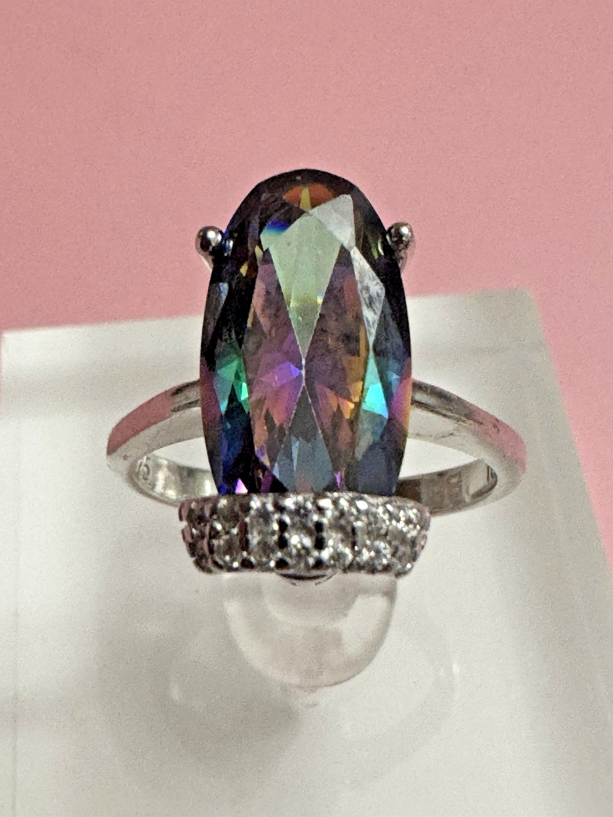 как выглядит Sterling Silver Mystic Topaz Ring 925  Oval Stone  Size 6  NEW фото