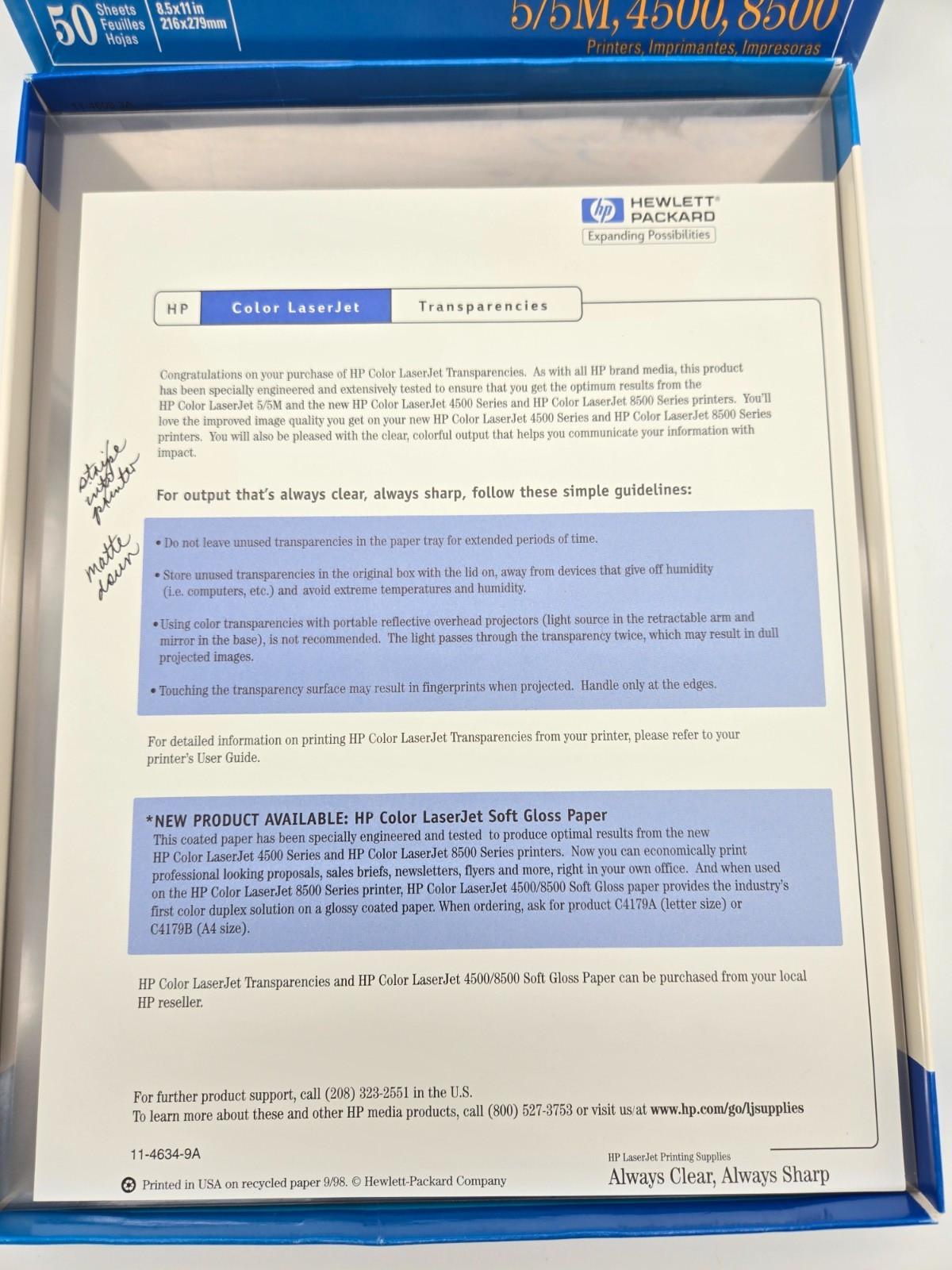 как выглядит HP Color Laserjet C2934A Transparencies Film - Includes 42 sheets- 8 1/2 X 11 In фото