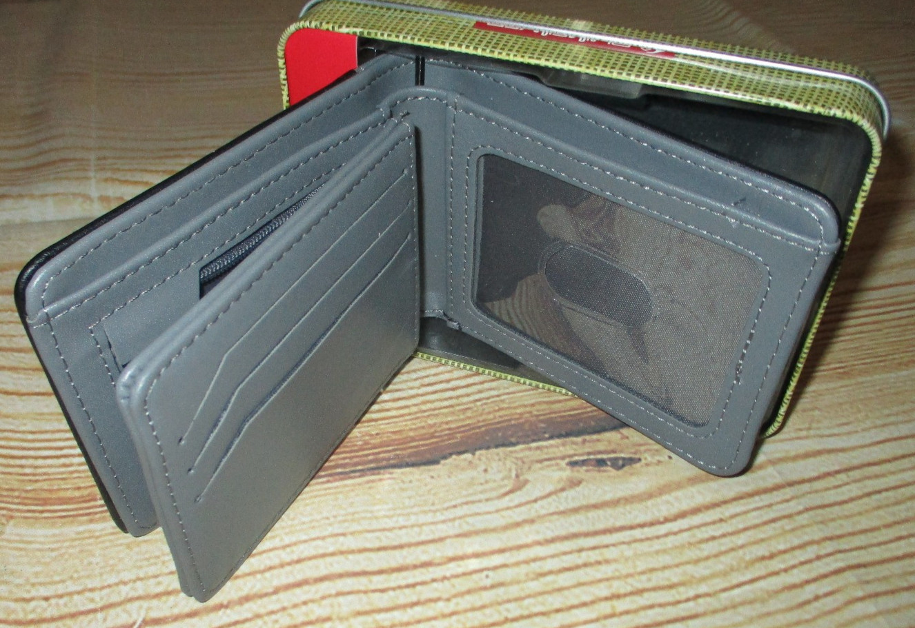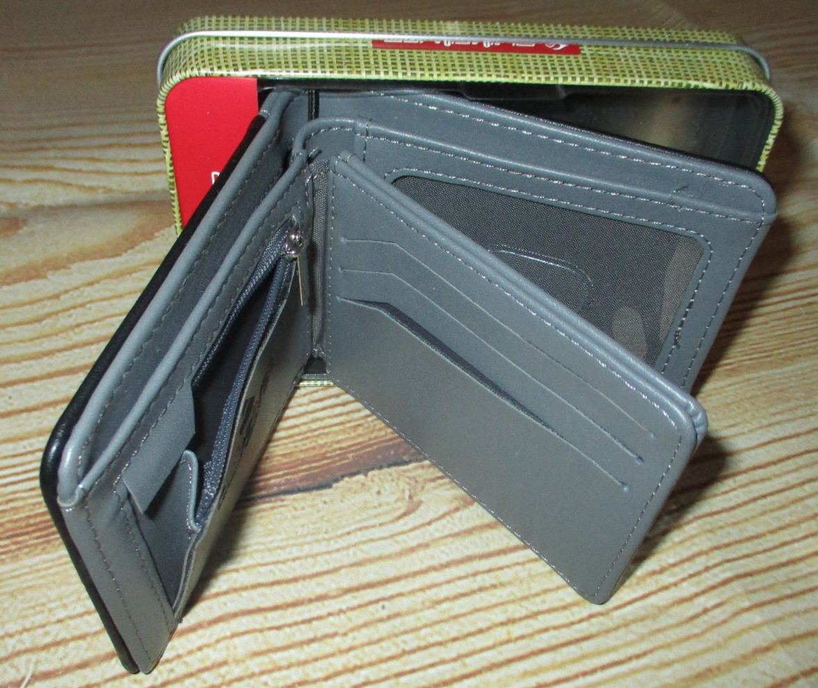 как выглядит MENS QUIKSILVER CHECKED BLACK GRAY BIFOLD WALLET WITH TIN GIFT BOX фото