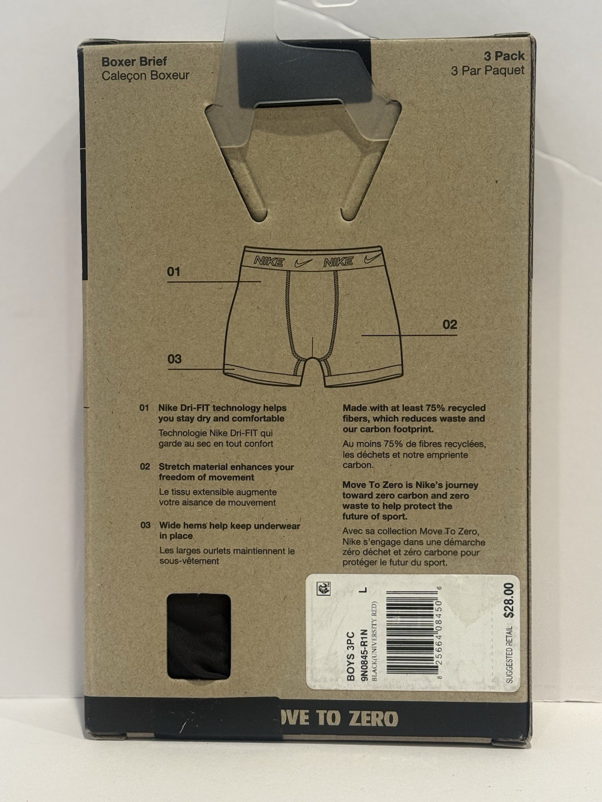 как выглядит Nike Boys Dri-Fit Essential Micro 3 Pack Boxer Brief Size Youth L - Red/Black фото