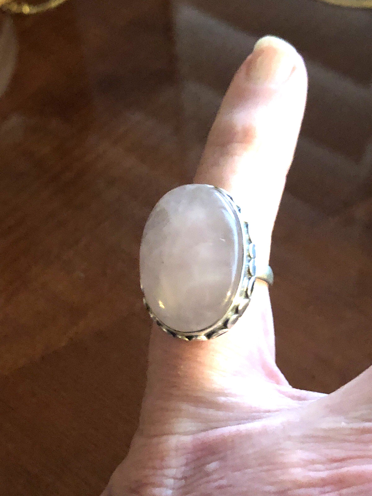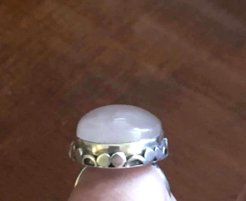 как выглядит Rare Large Vintage Sterling Silver 925 Rainbow Moonstone Ring Size 9 12 Grams фото