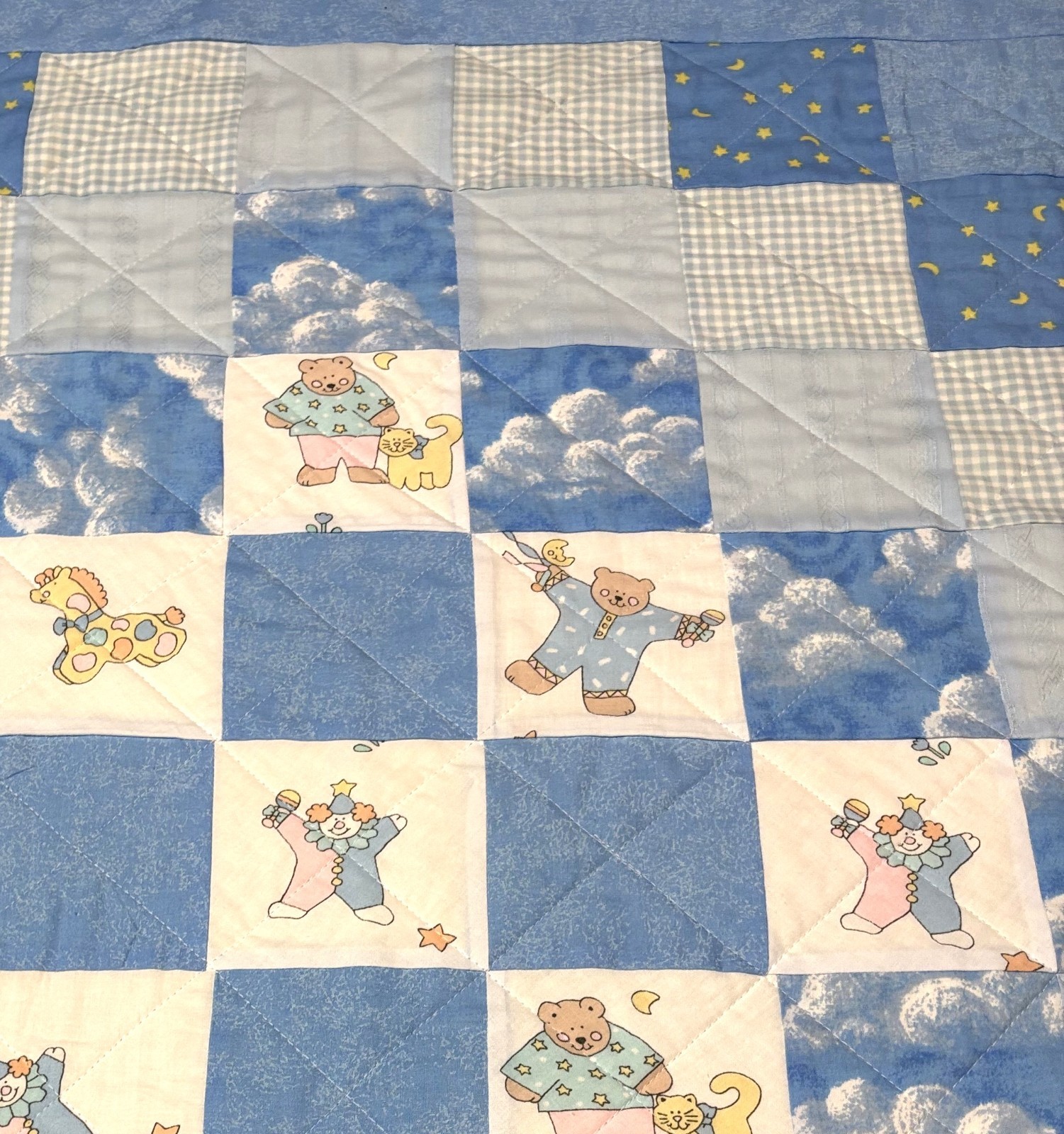 Baby Quilt Handmade Boy's Blue Crib Blanket Around the World Pattern New