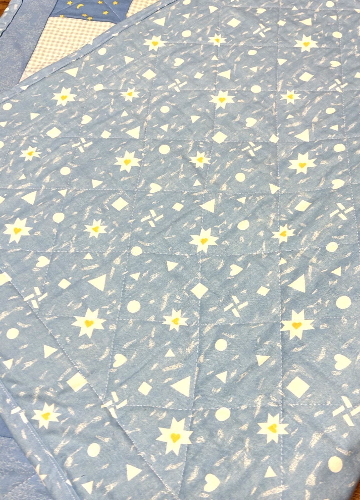 как выглядит Baby Quilt Handmade Boys Blue Crib Blanket Around the World Pattern New фото