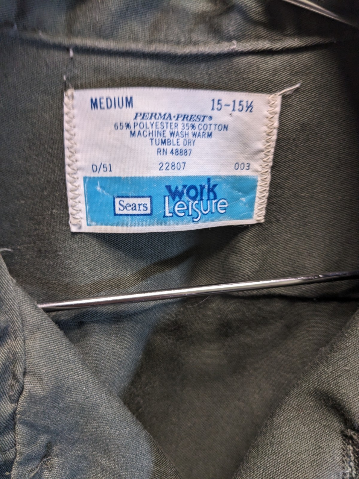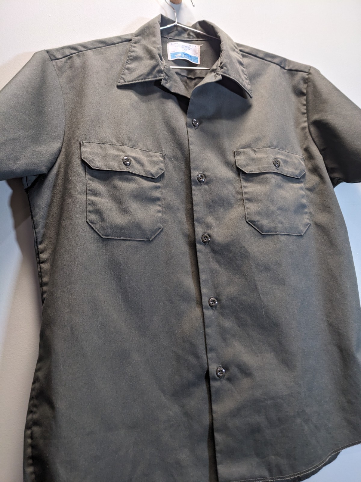 VTG 70s Sears Workwear Mechanic Perma-Prest Short Sleeve Shirt Medium Olive GUC