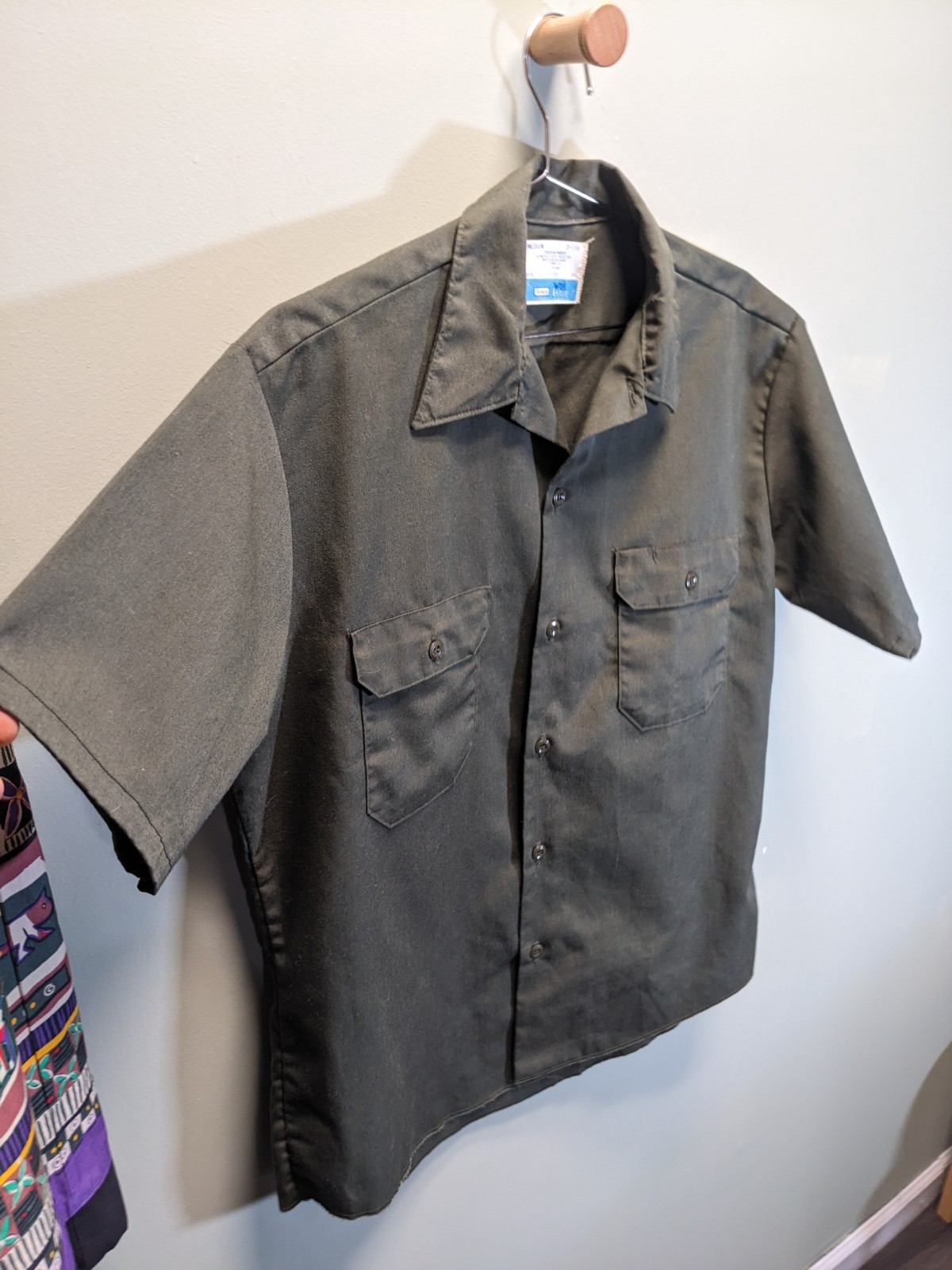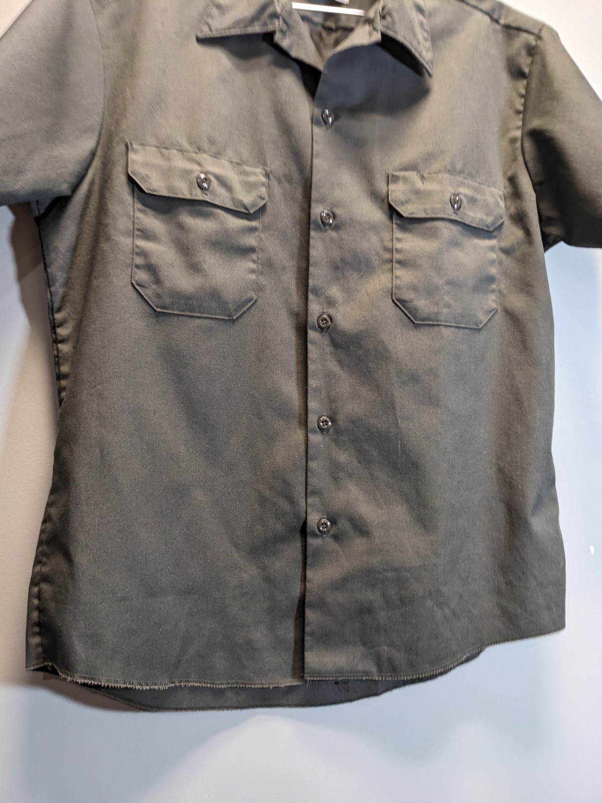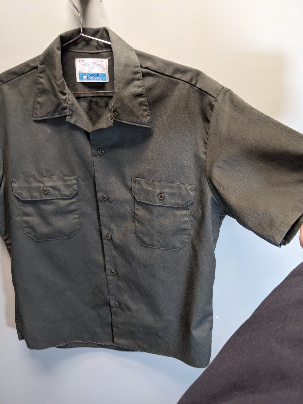 как выглядит VTG 70s Sears Workwear Mechanic Perma-Prest Short Sleeve Shirt Medium Olive GUC фото