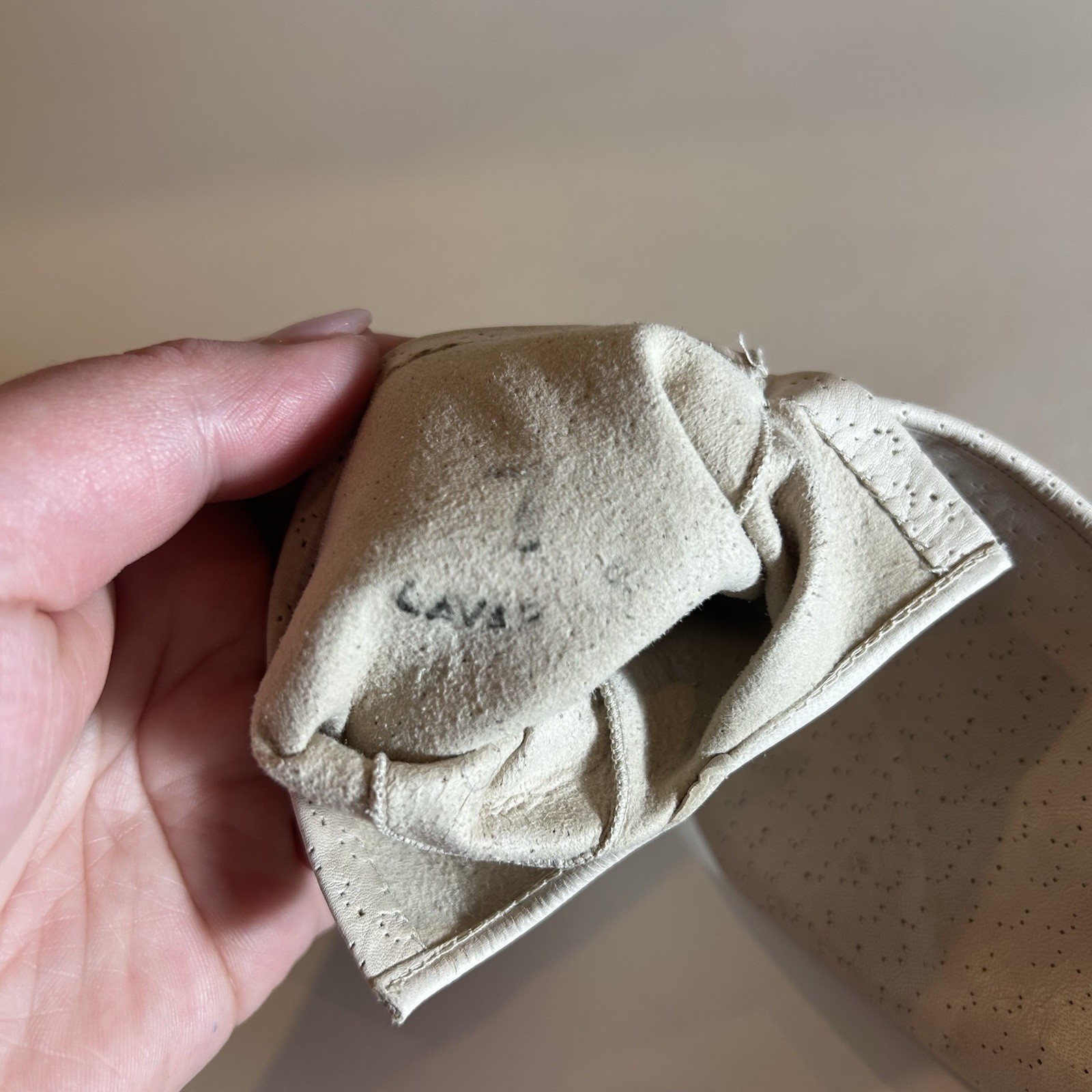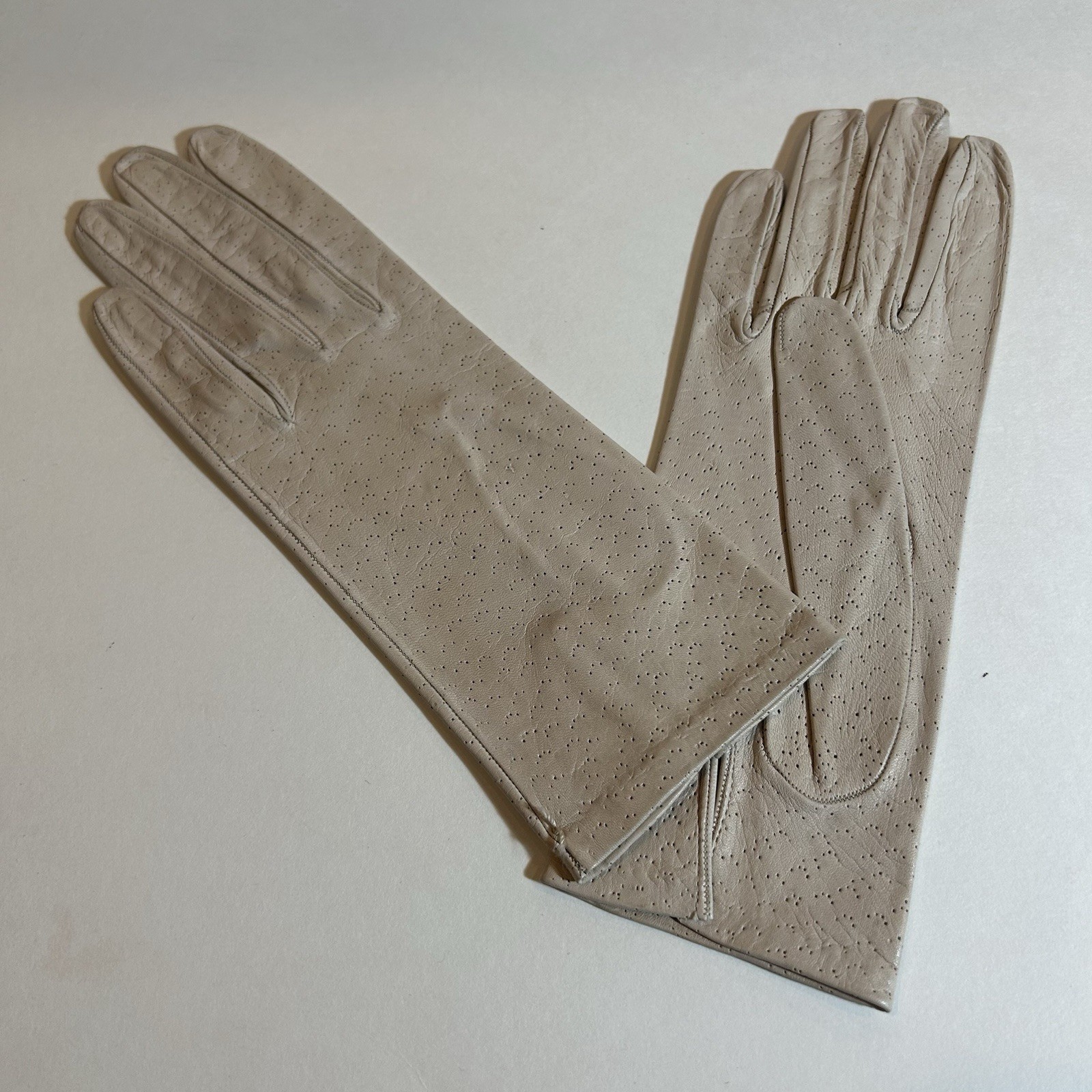 Vintage Leather Gloves Size 7 Beige Perforated NOS Mid Century Classic