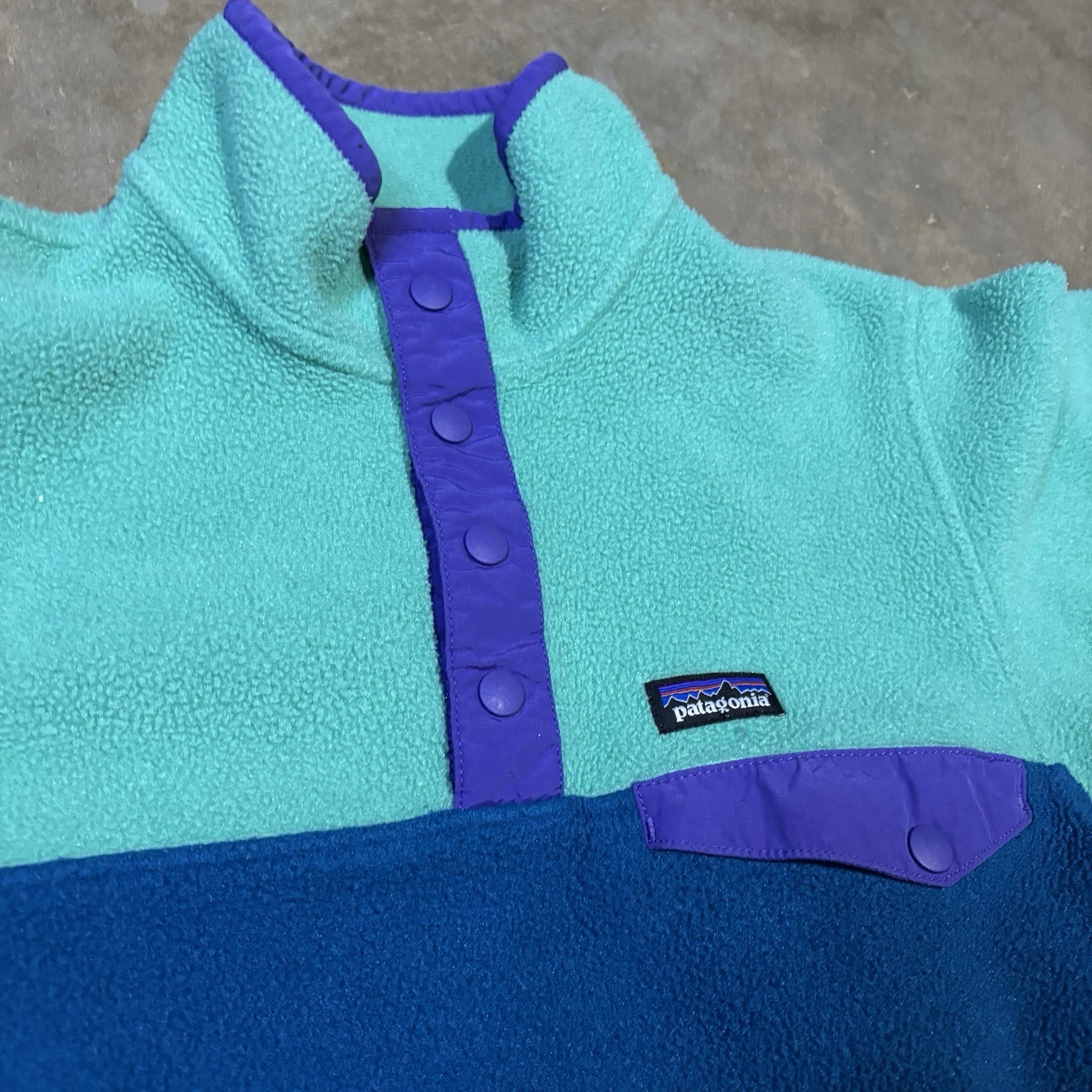 Patagonia Synchilla Snap T Pullover Girls Large 12 Blue Aqua Green Casual FA15