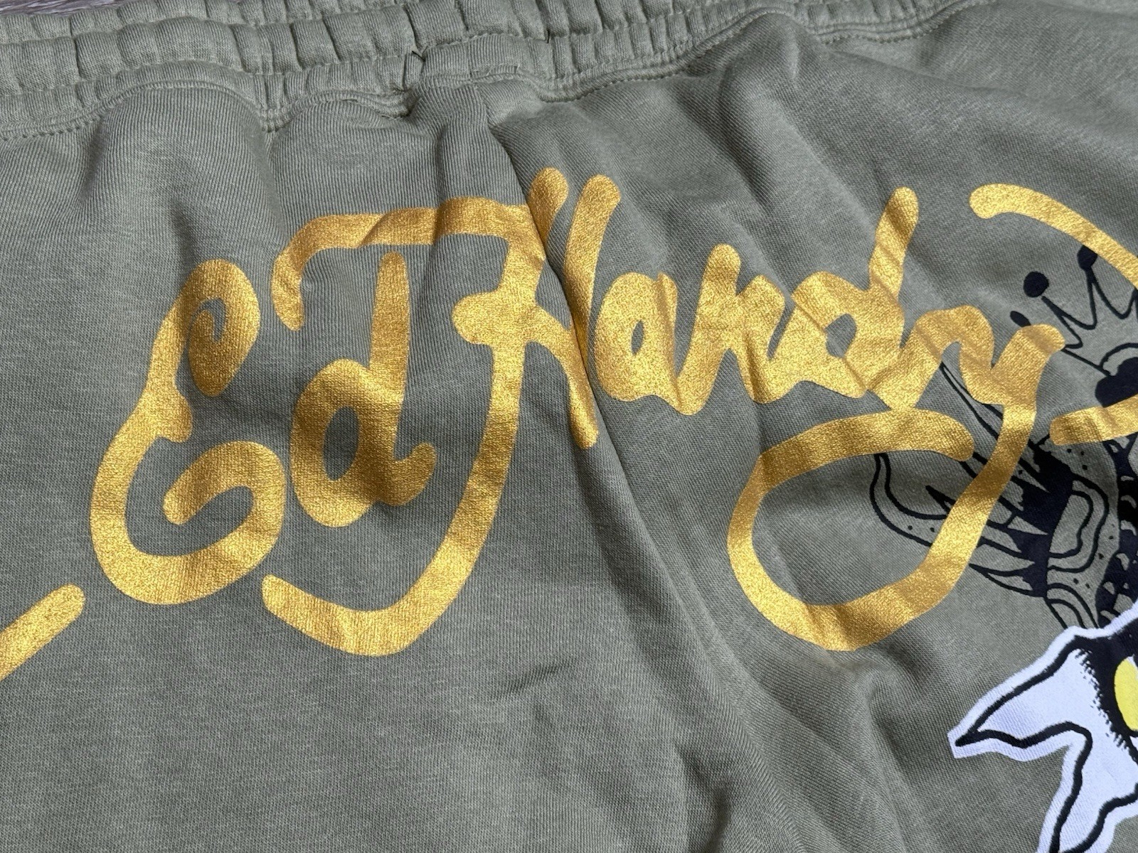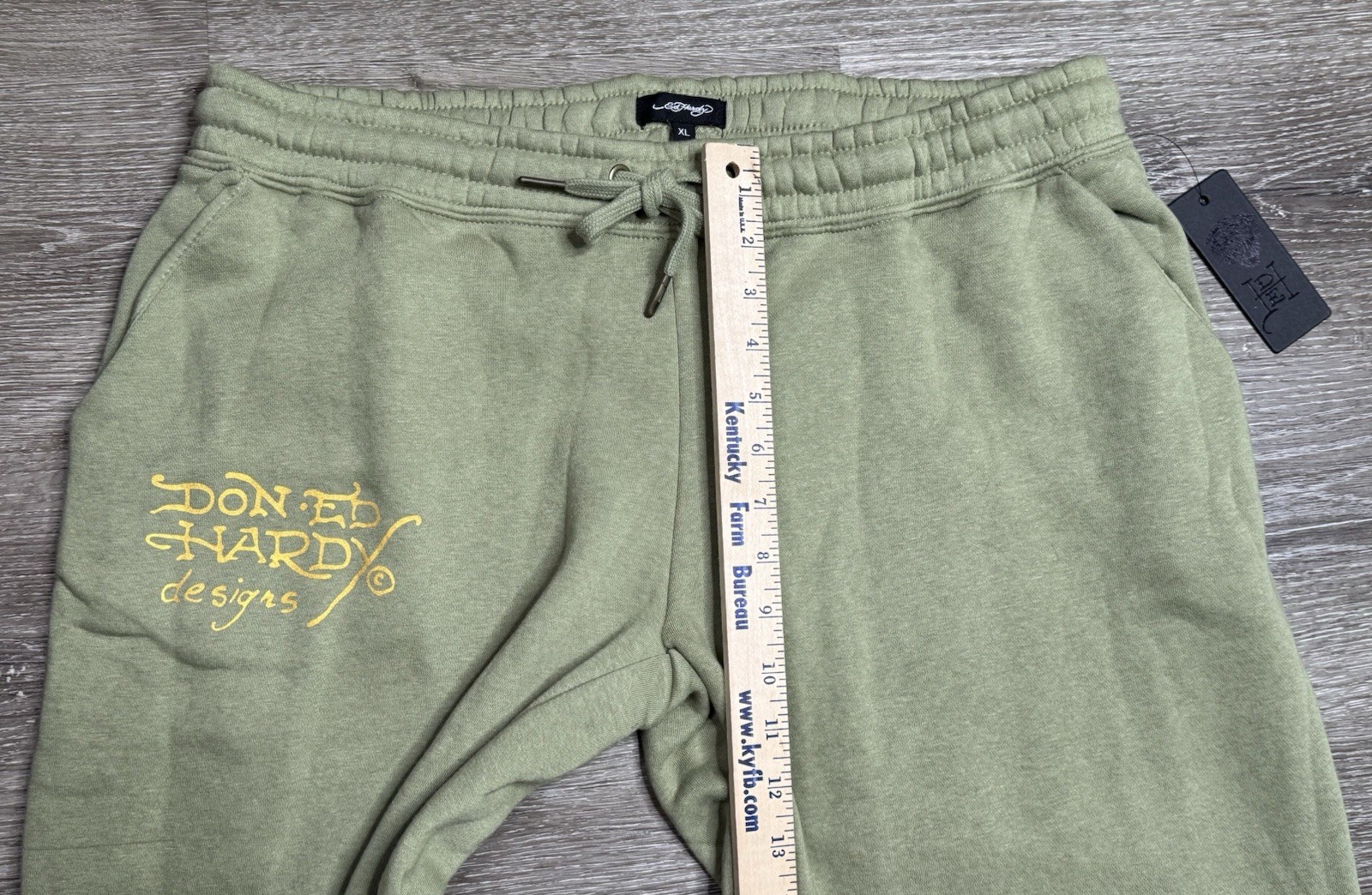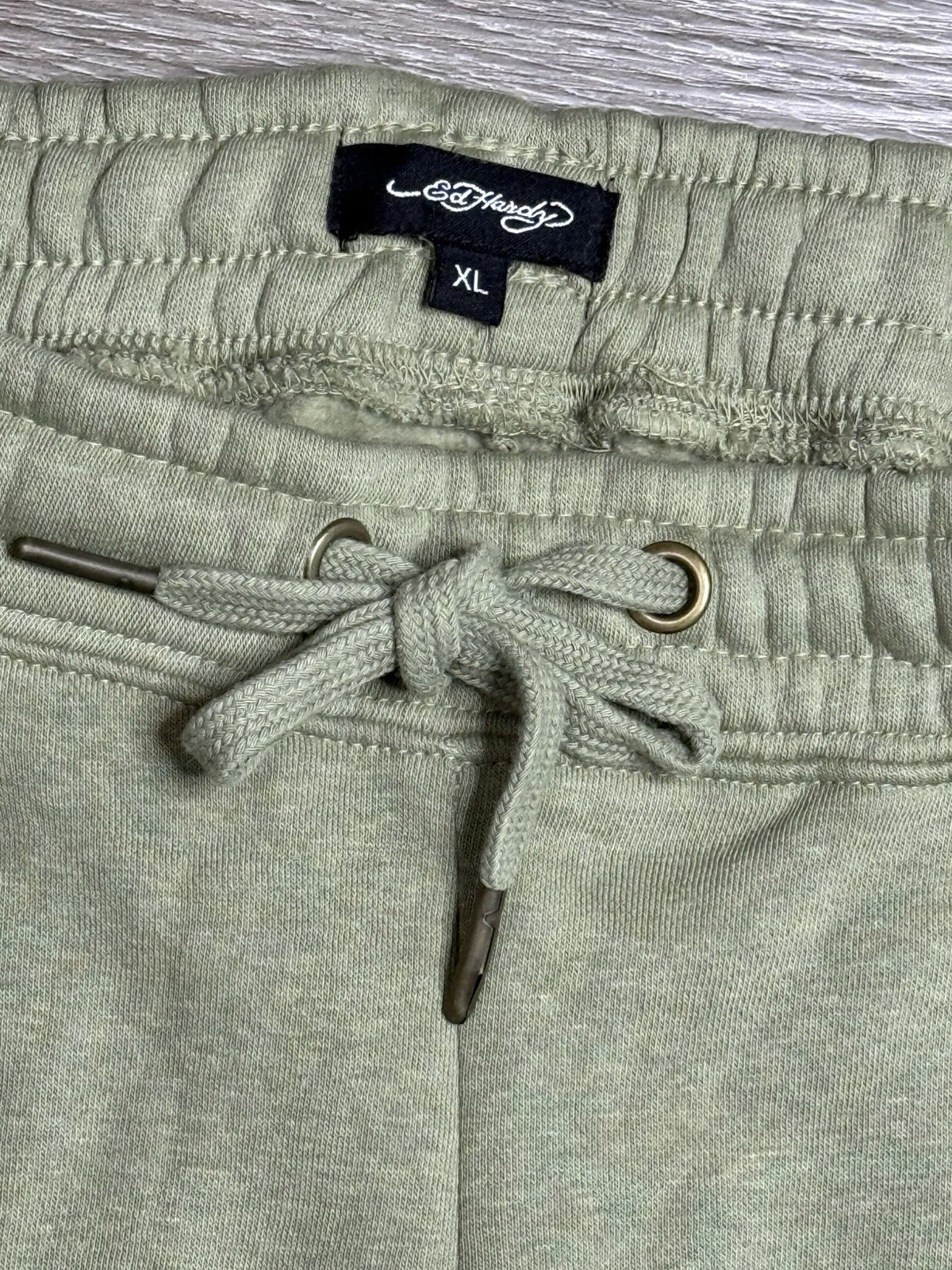 как выглядит Ed Hardy Broken Hearts Flared Sweatpants Womens Sz XL Sage Green Y2K Tattoo NEW фото