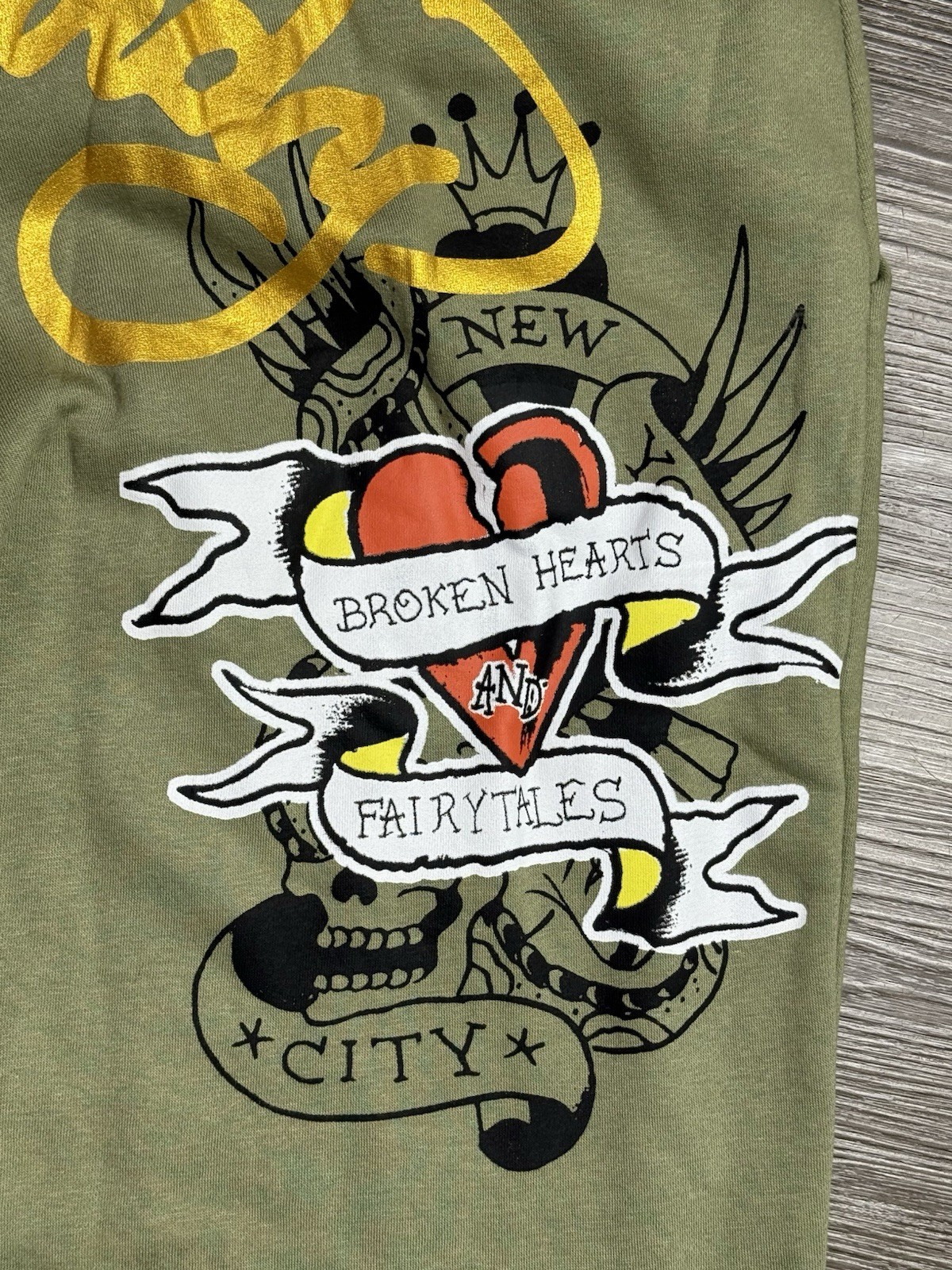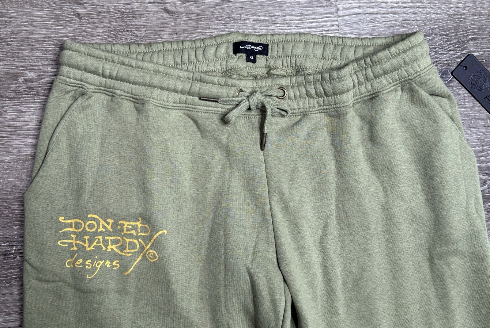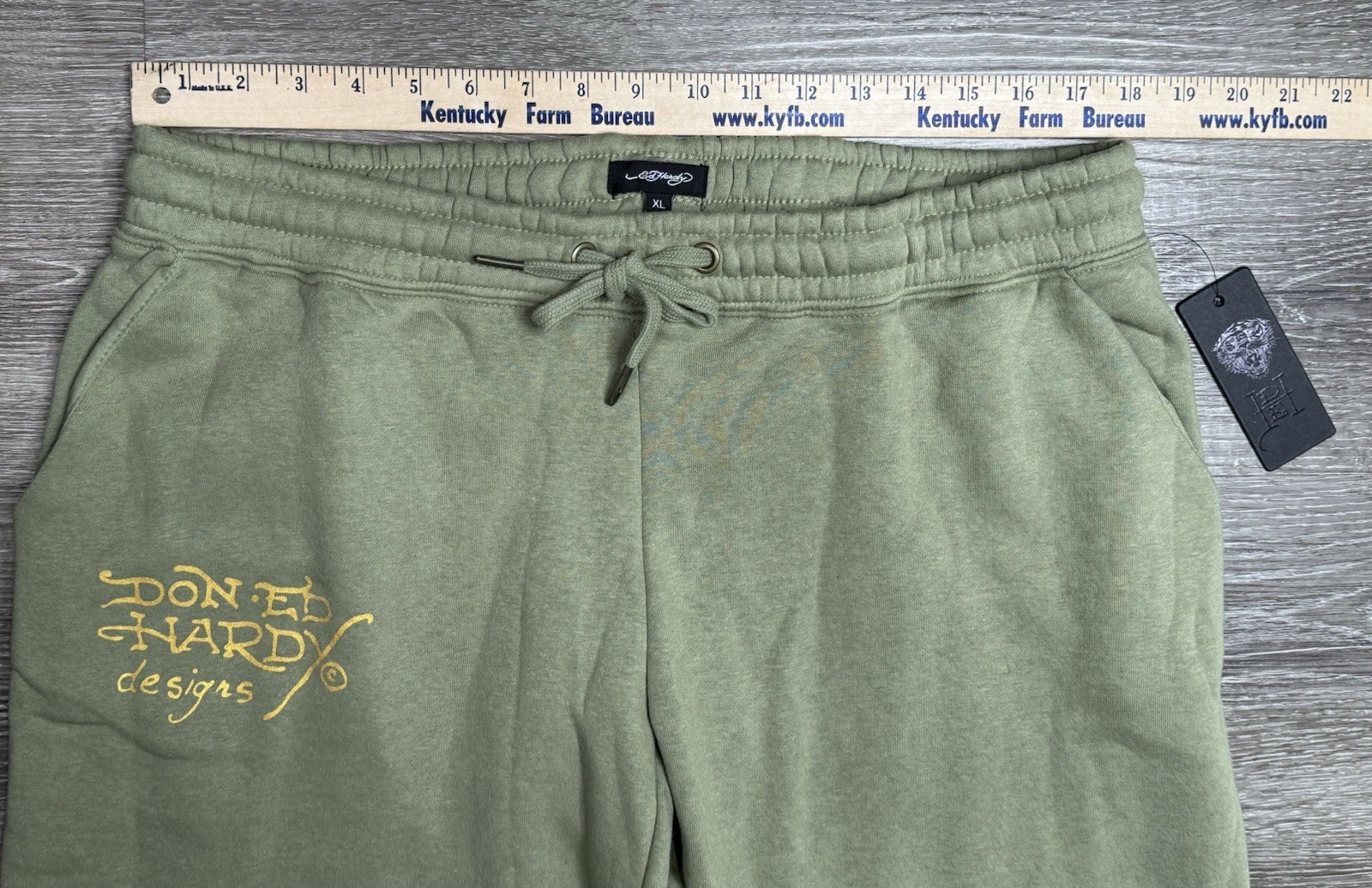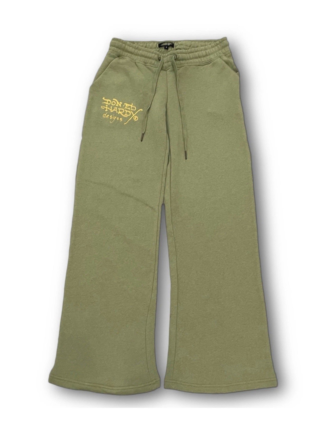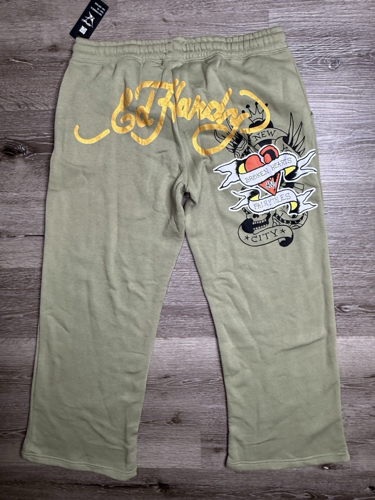 Ed Hardy Broken Hearts Flared Sweatpants Womens Sz XL Sage Green Y2K Tattoo NEW
