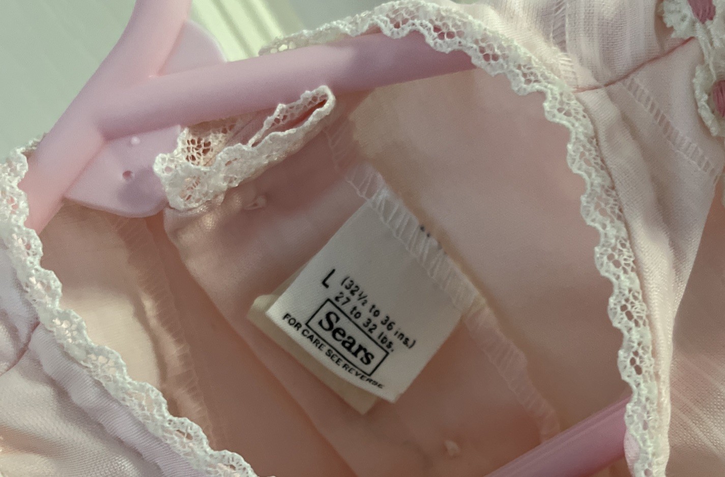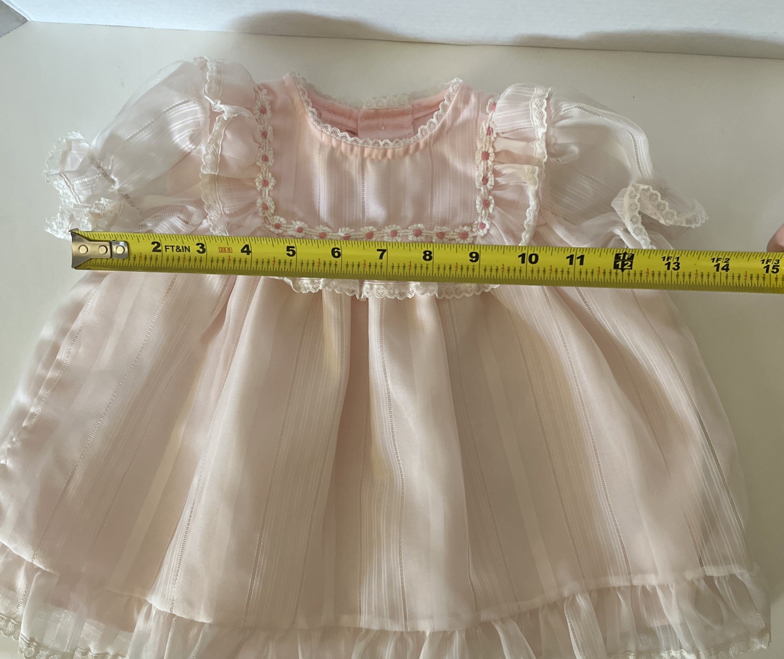 как выглядит Vintage Sears 1960 s Fashions Pink Baby Girl Dress Flowers Lace Lined Baby Large фото