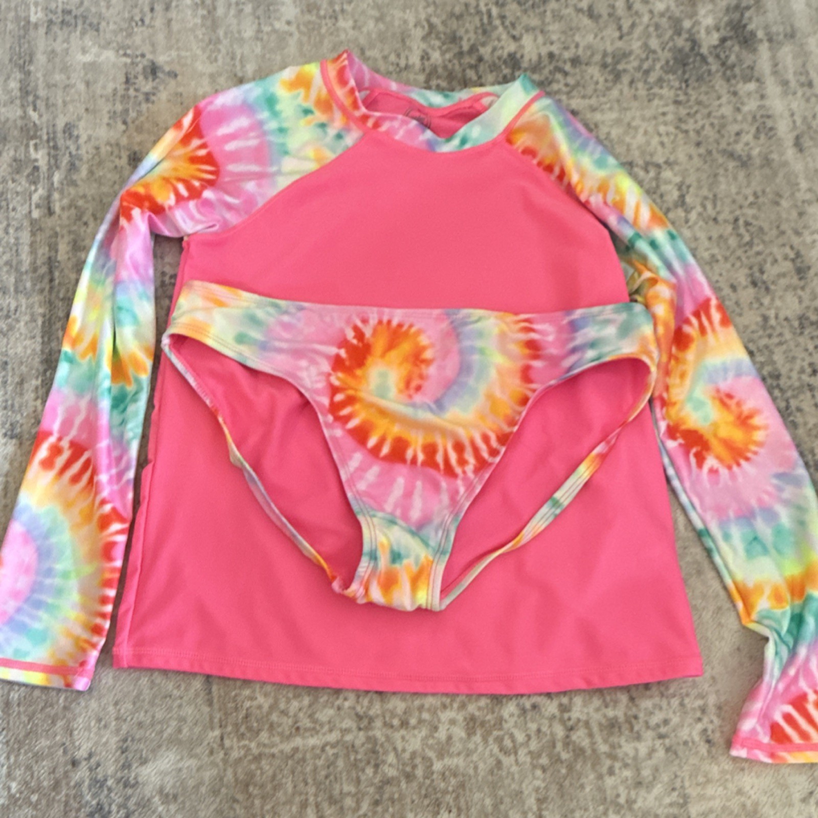 Wonder Nation Girls XXL 18 Pink Tie Dye Long Sleeve Swim Set Bikini Bottoms