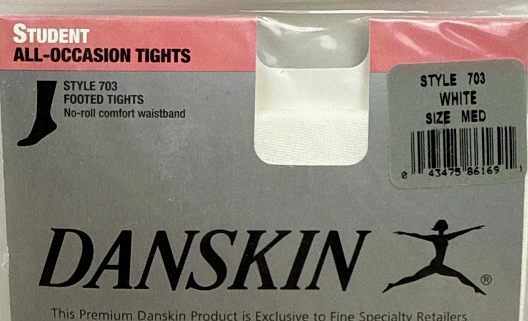 Danskin Student All-Occasion Girls White Footed Tights Style 703 Size Med NEW