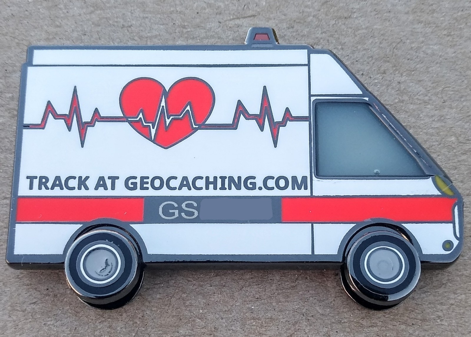 First Responder Ambulance Geocoin - Wheels Spin - Activated, Adoptable - TB9N74J