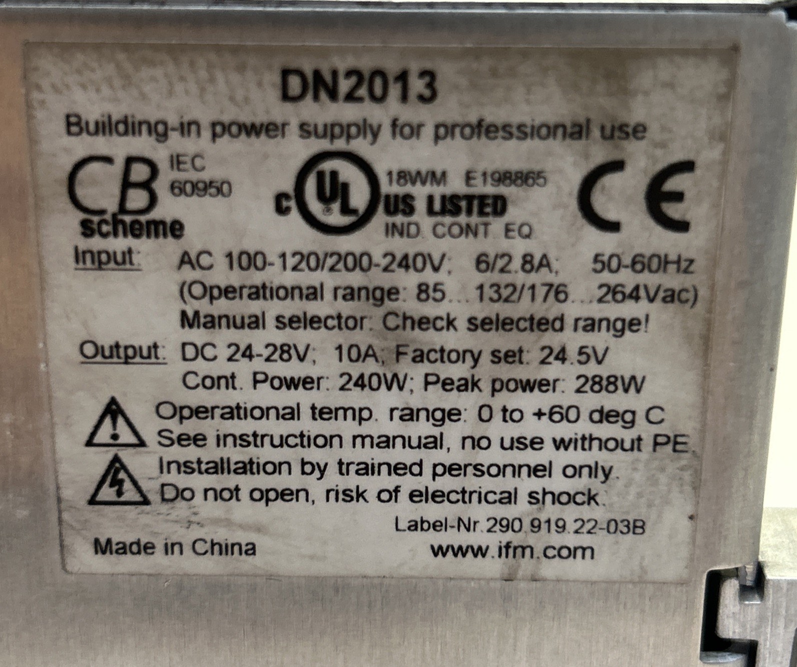 IFM EFECTOR,DN2013,POWER SUPPLY 24VDC 10AMP