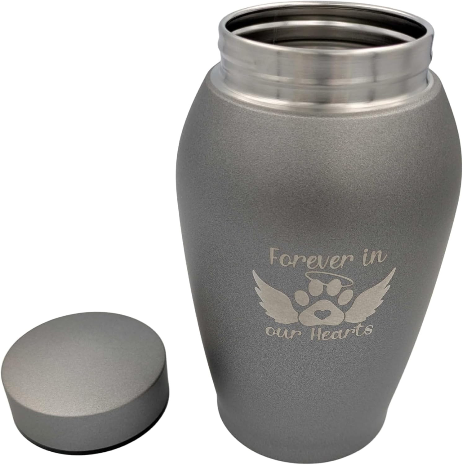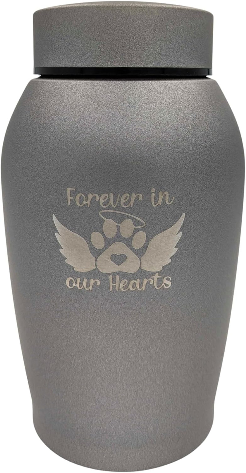 Pet Cremation Urn Engraved Stainless Steel for Small Pets up to 20 Pounds Gray