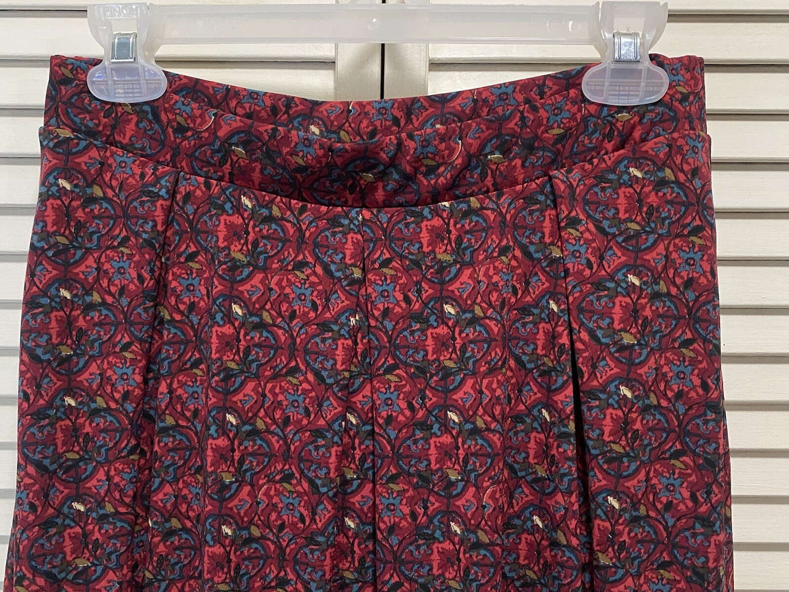 как выглядит LulaRoe Flowy Burgundy Medallion Print Midi Skirt Size M Boho Pockets фото
