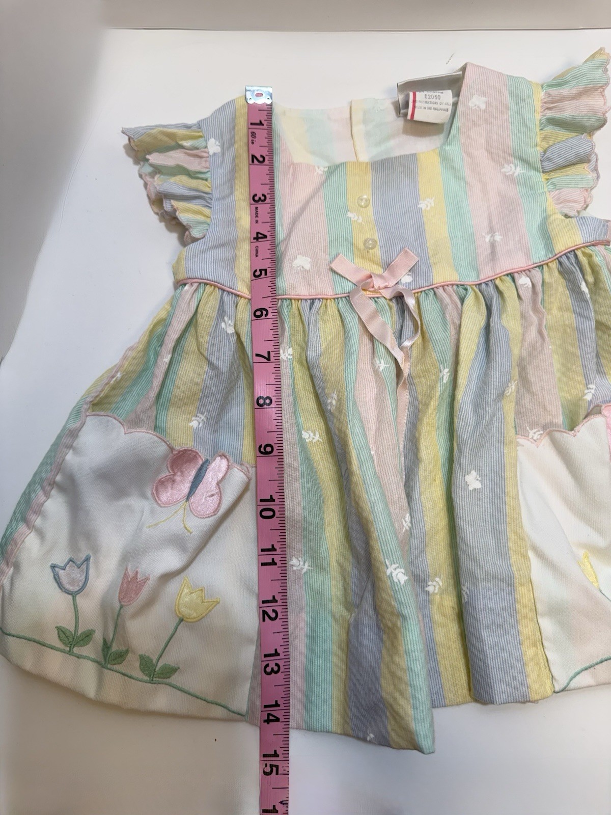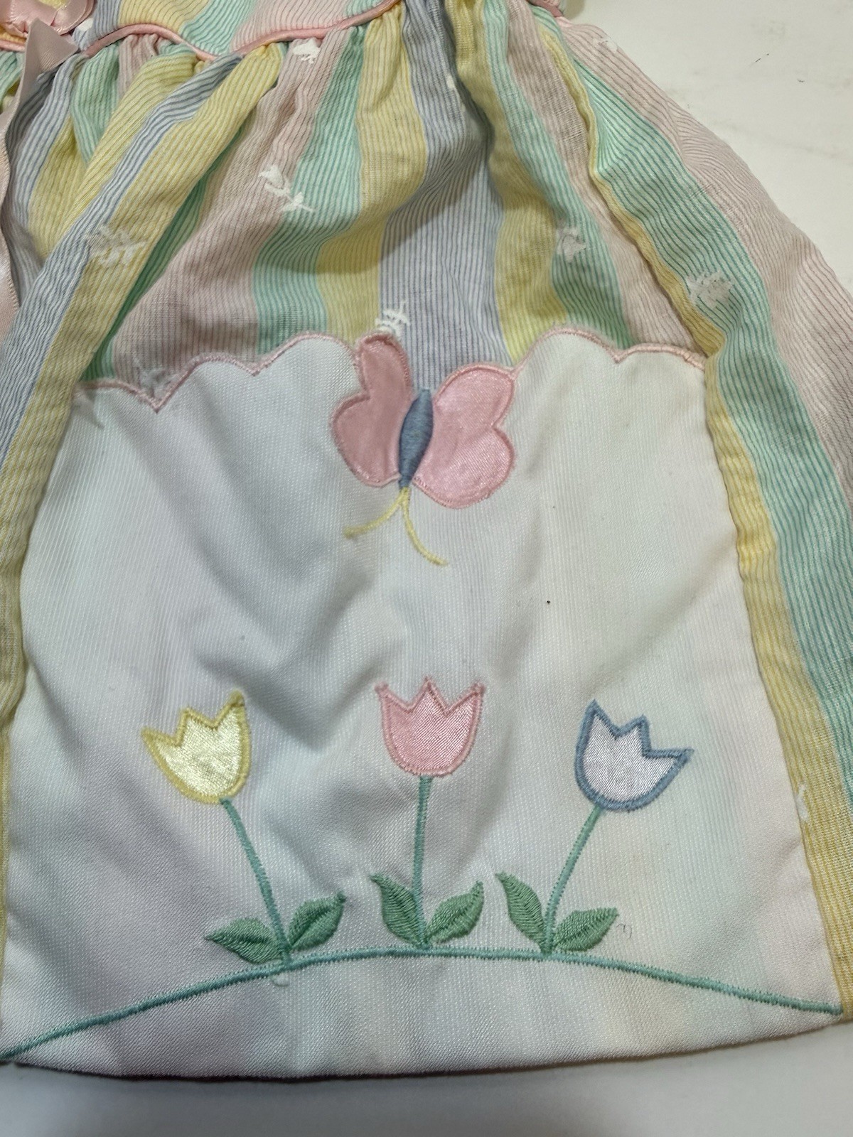 как выглядит Vintage Baby Togs Pastel Stripe Butterfly Flower Easter Spring Dress 24 Months фото