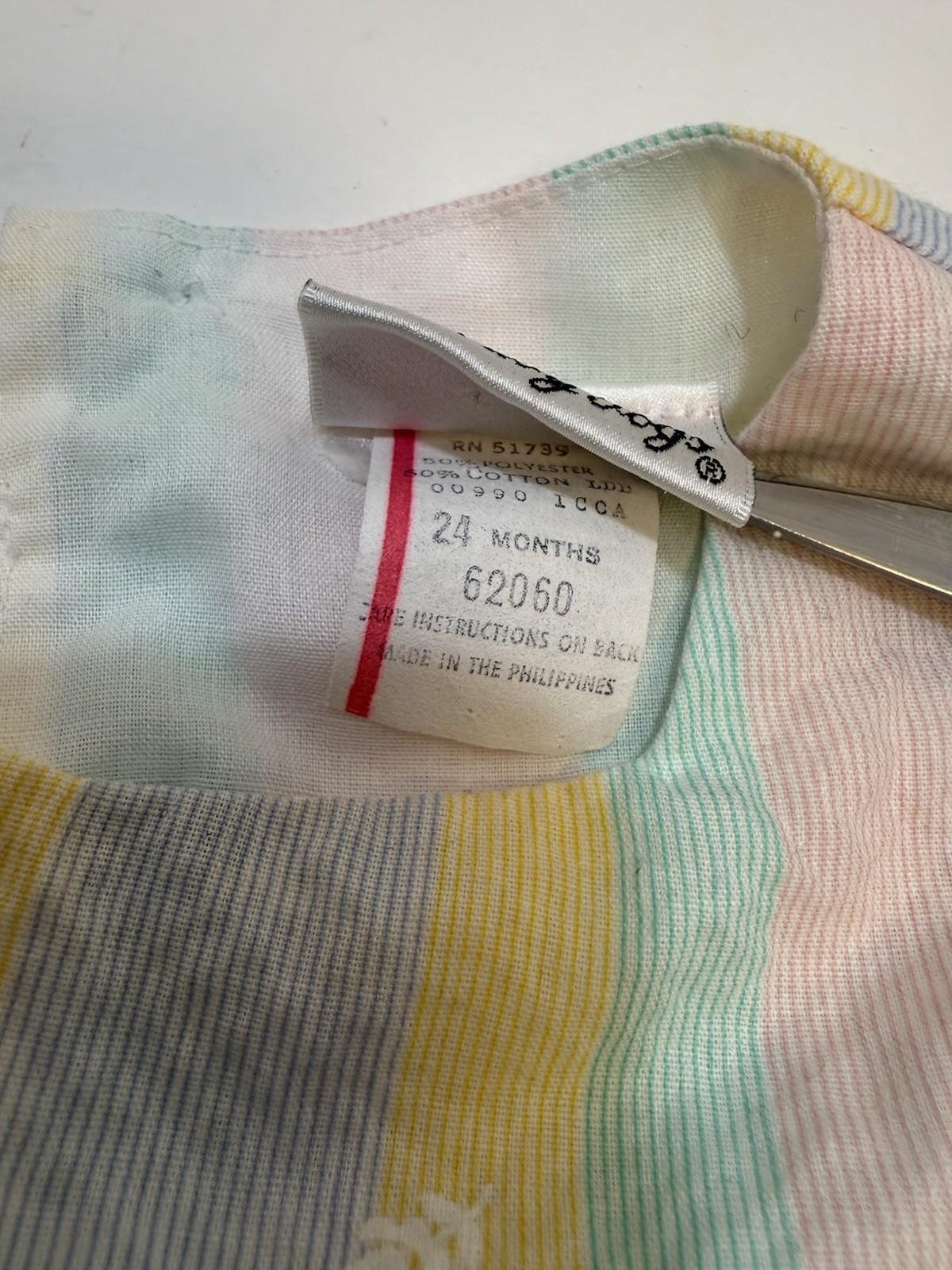 Vintage Baby Togs Pastel Stripe Butterfly Flower Easter Spring Dress 24 Months