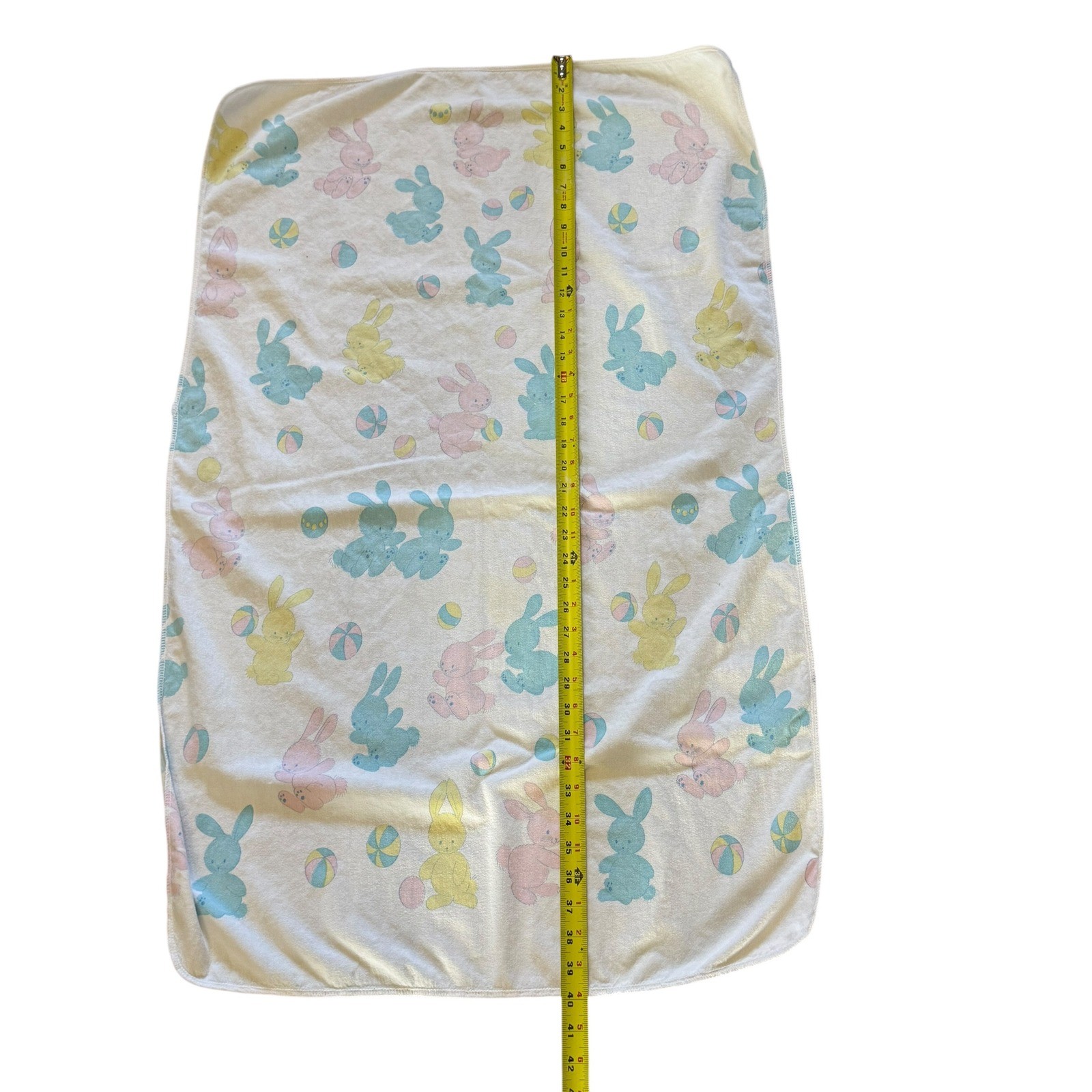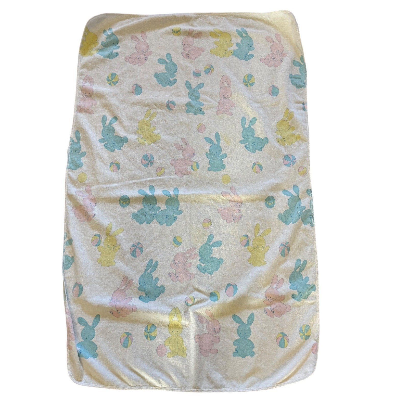 VTG Quiltex Pastel Bunnies With Balls Flannel Receiving Blanket FLAWED