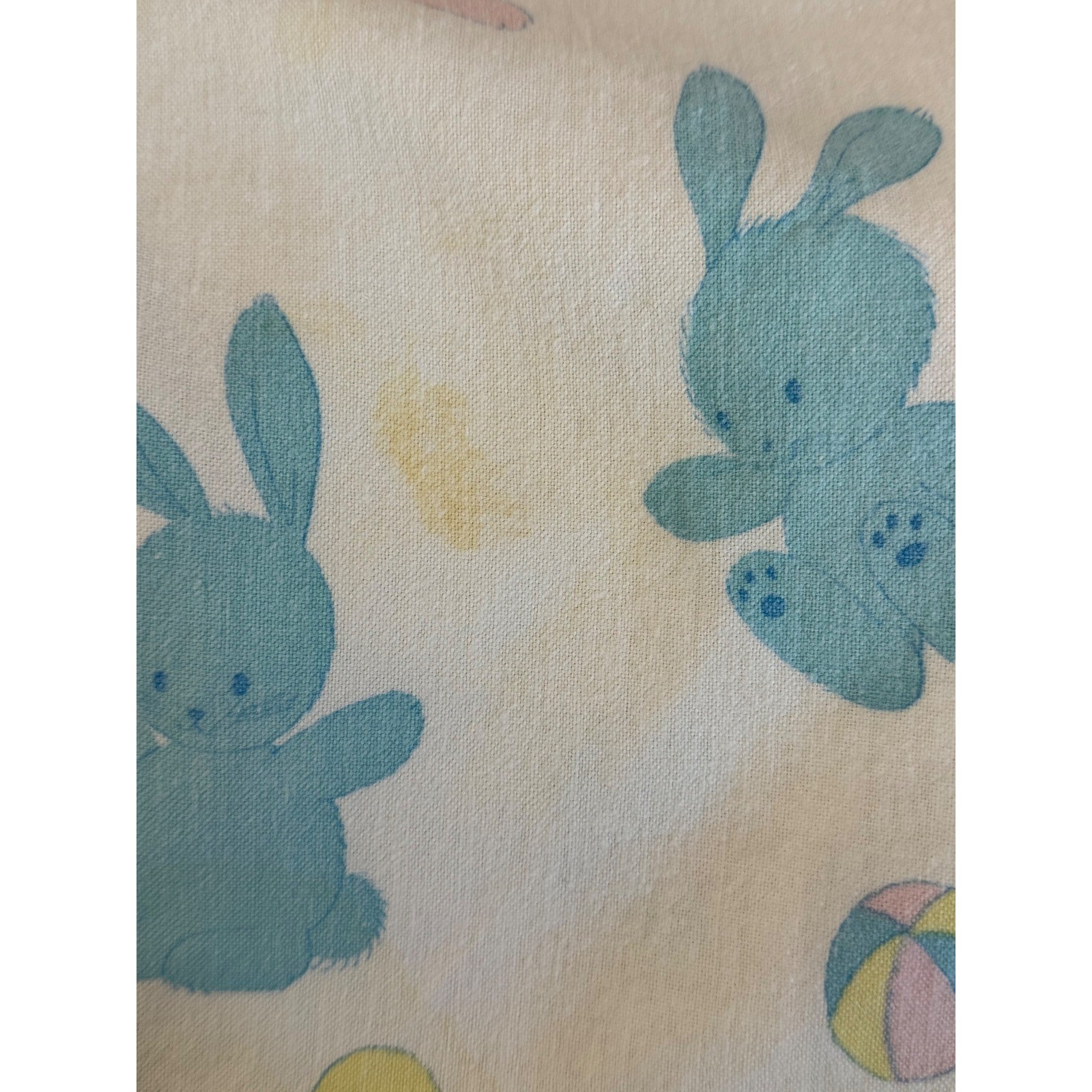 как выглядит VTG Quiltex Pastel Bunnies With Balls Flannel Receiving Blanket FLAWED фото