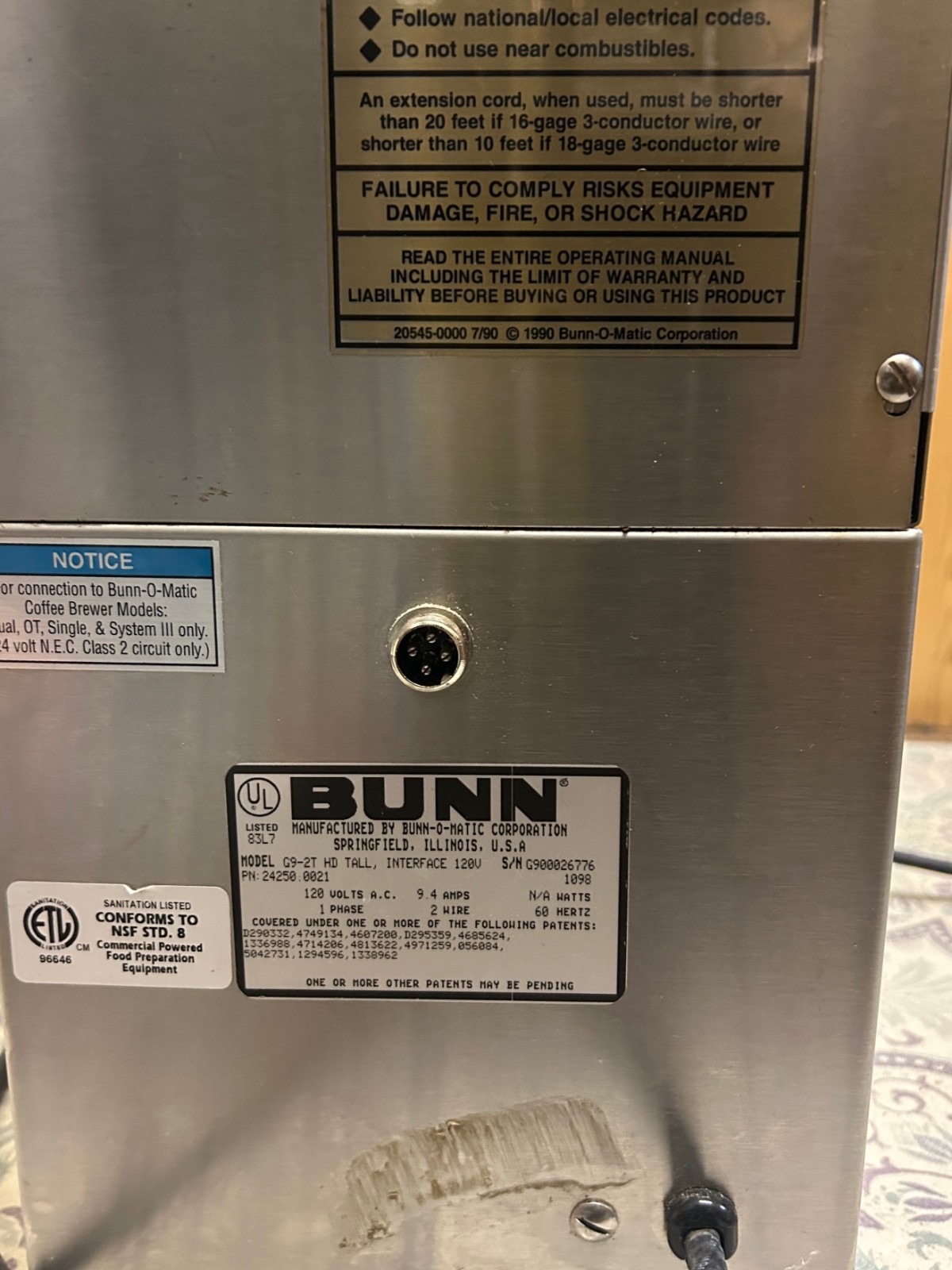Bunn G9-2hd Stainless Steel Commercial Countertop Coffee Bean Grinder 120v