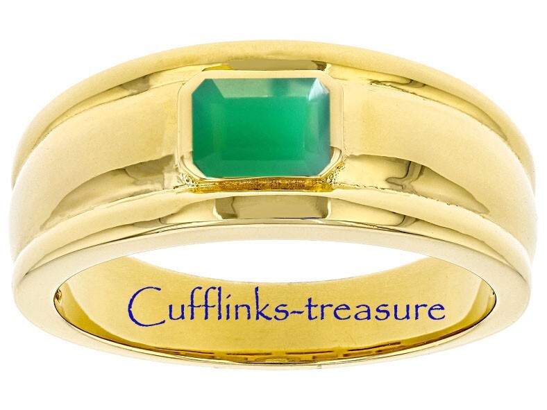 как выглядит Natural Green Onyx Gemstone with 925 Sterling Silver Gold Plated Band Ring 98 фото