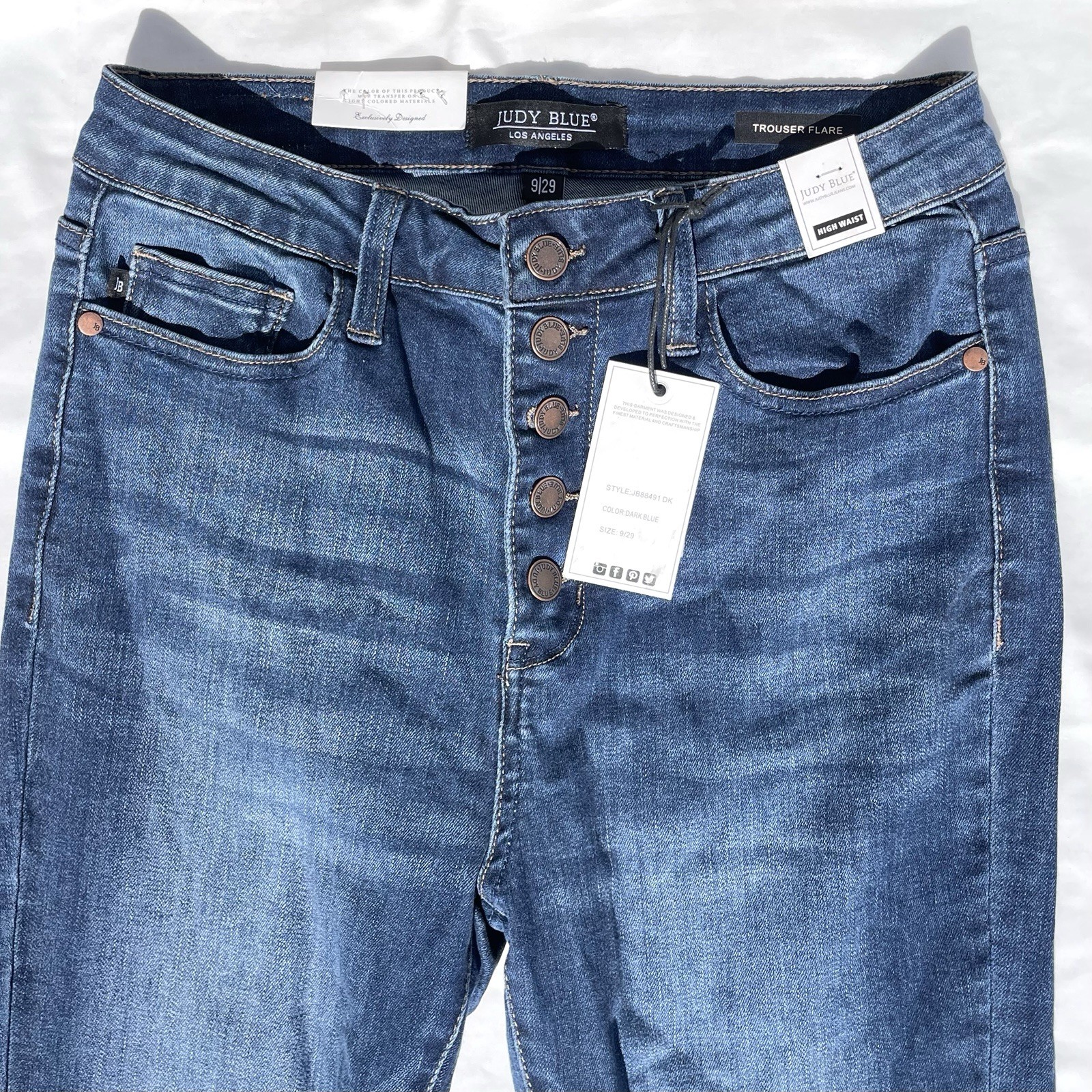 Judy Blue Trouser Flare Blue Jeans Womens 9/29 Button Up High Rise 9 29