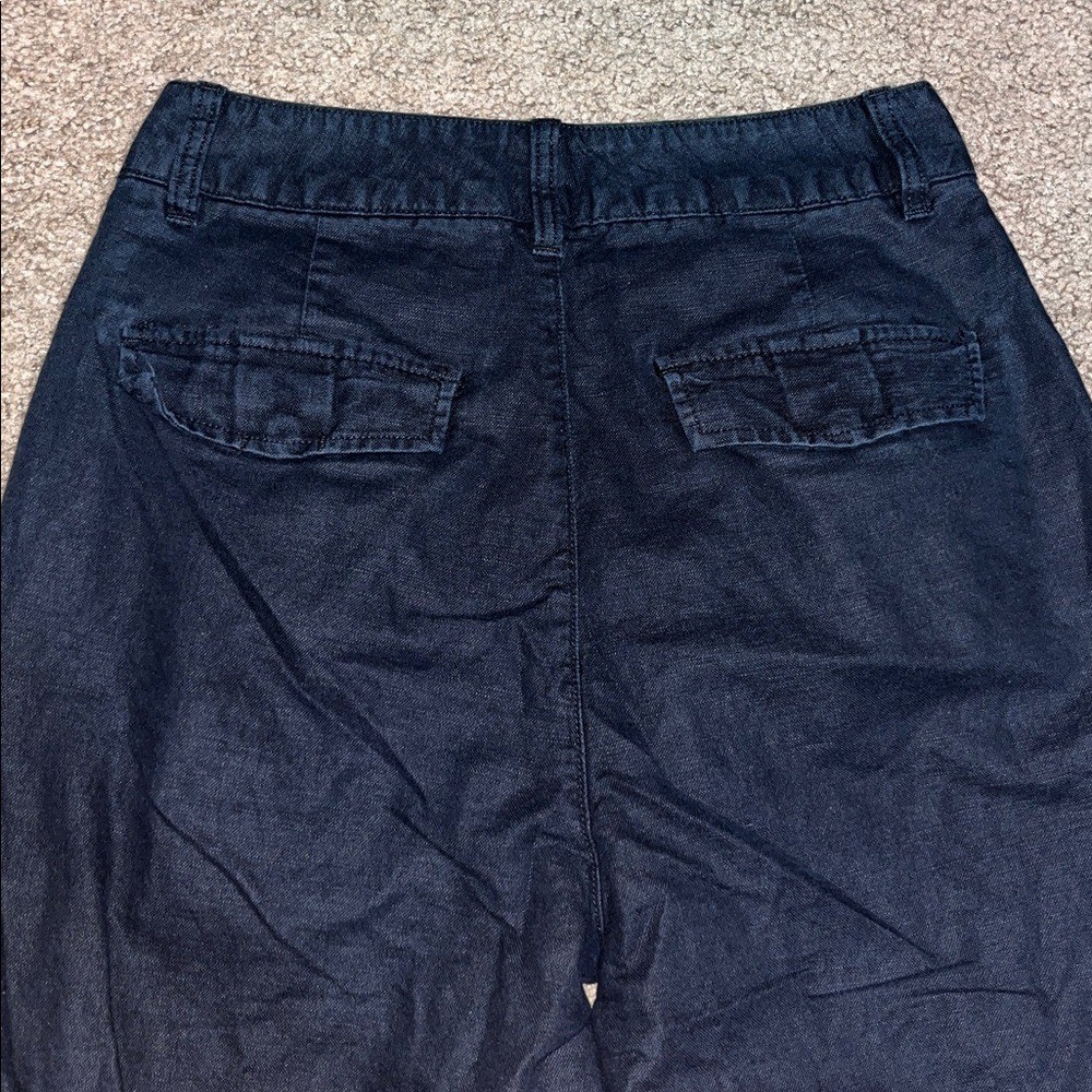 GAP Relaxed Wide Leg Pleated Linen-Blend Pants Black 4
