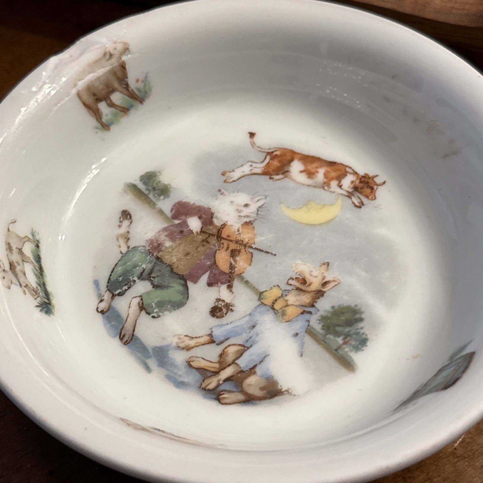 Vintage German Baby Bowl Porcelain 5 Bowl Dish Nursery Cat and the Fiddle