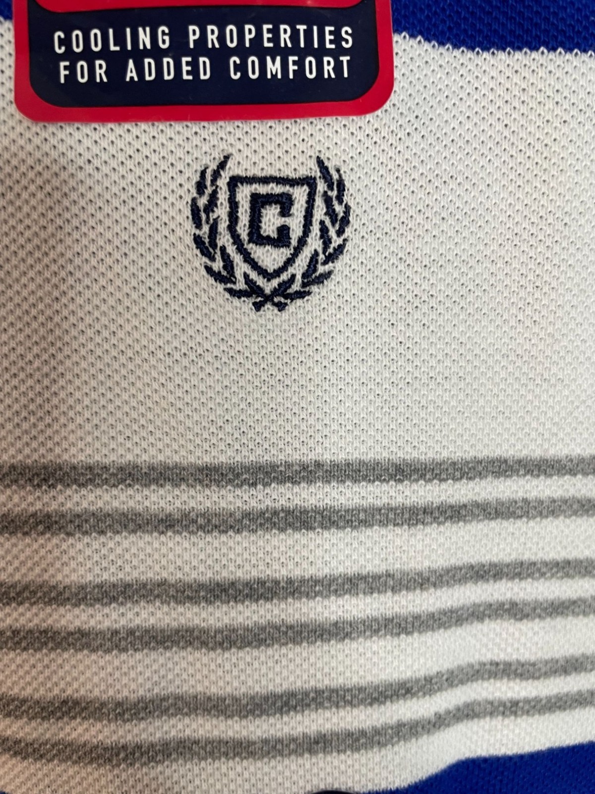 Chaps Everyday Moisture Wicking Striped Polo Shirt Gray Blue White