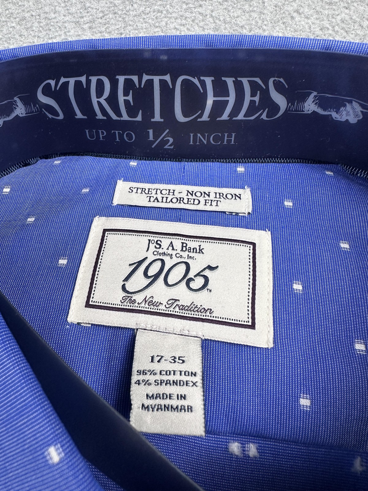 Jos A Bank 1905 Shirt Mens 17 35 Blue Geometric Slim Fit Non Iron Stretch NWT