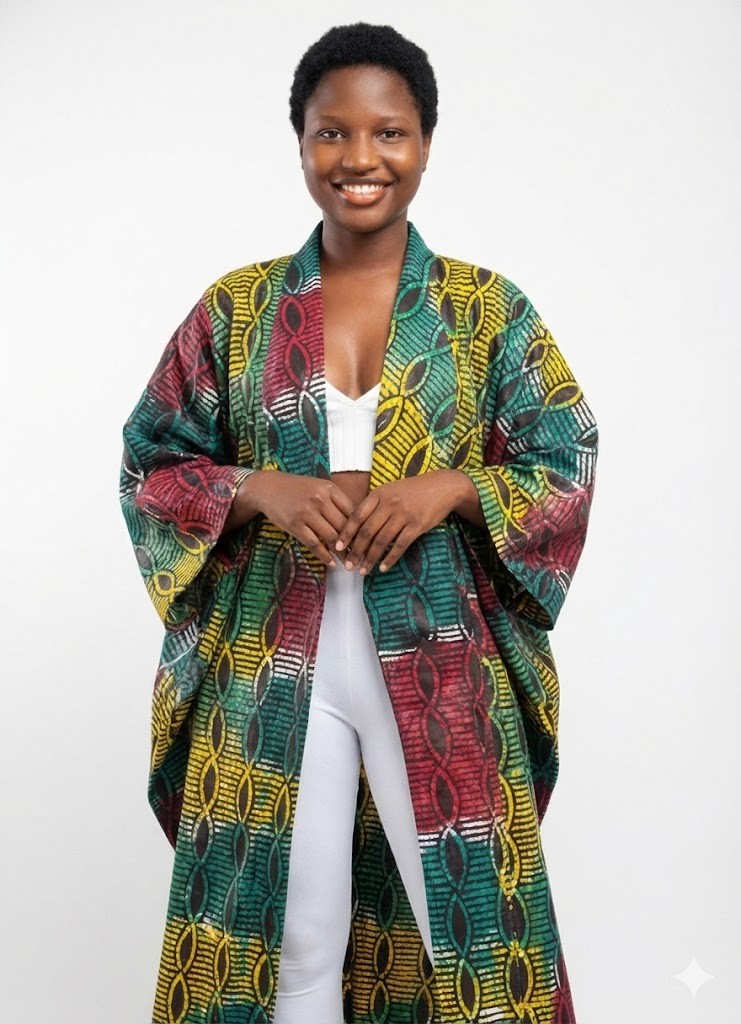 African Print Kampala/ Batik Long Kimono Jacket For Women