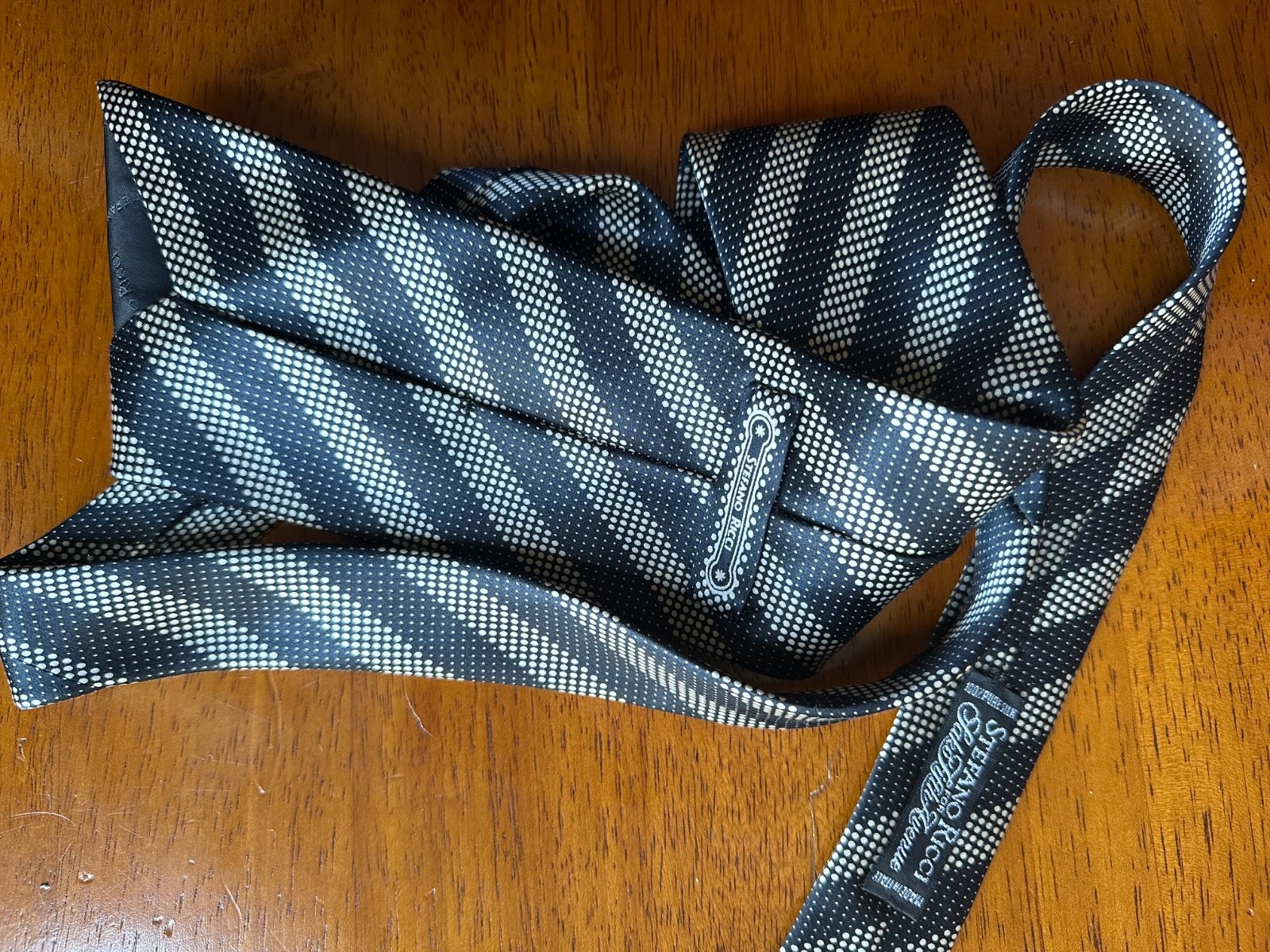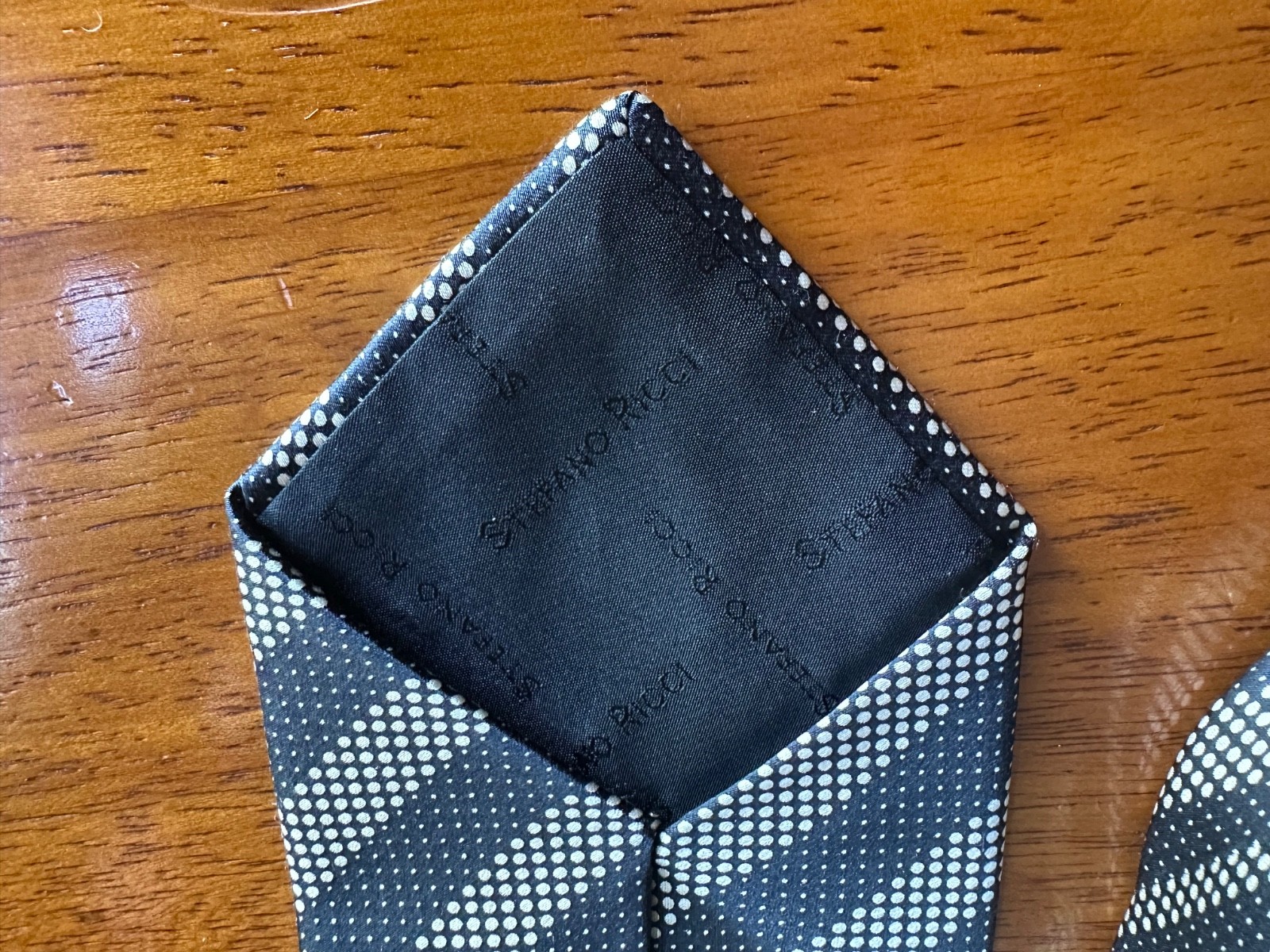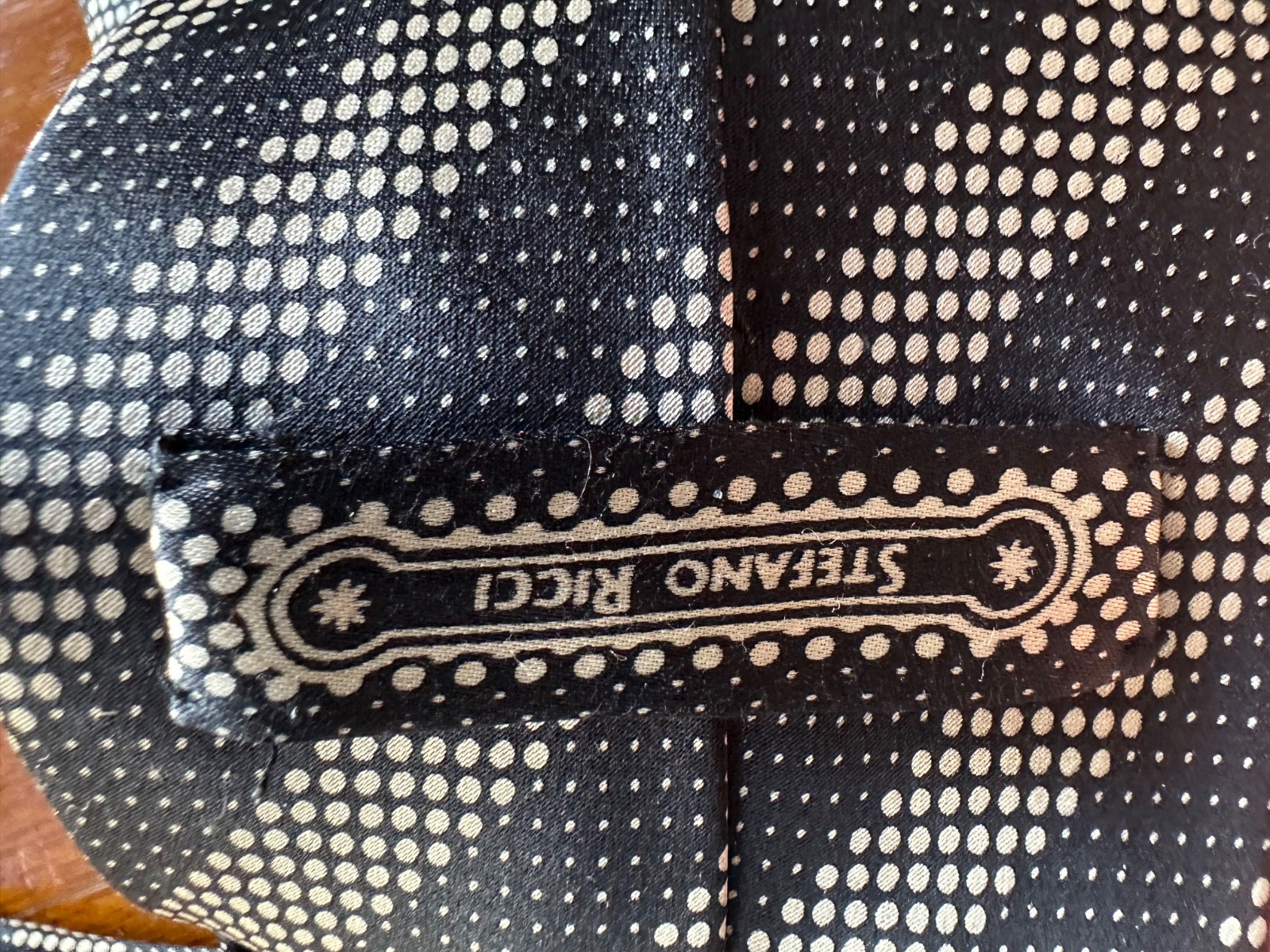stefano ricci silk tie blackish navy striped circles made in Italy 100 silk
