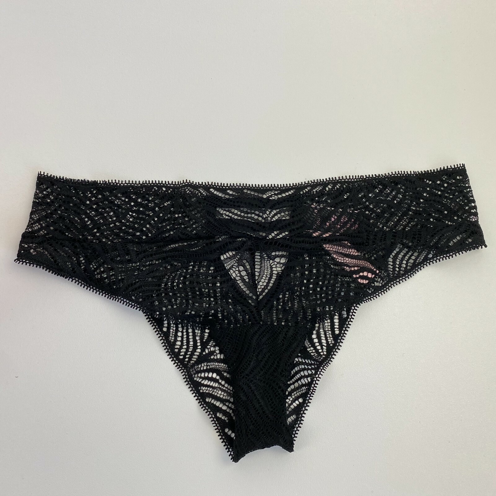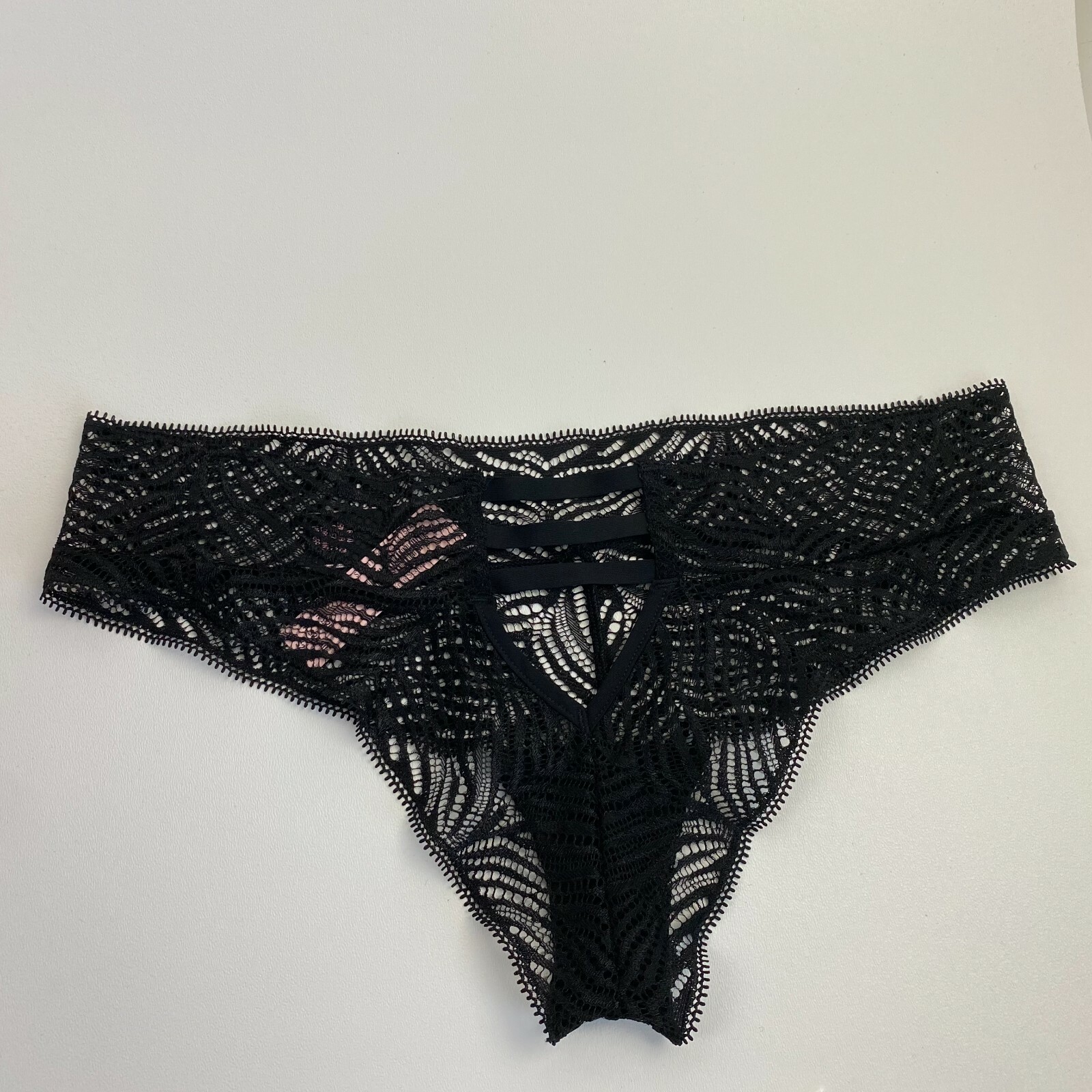 как выглядит Victorias Secret Lace Zebra Pattern Strappy Back Tanga Panties Black XL NWT фото