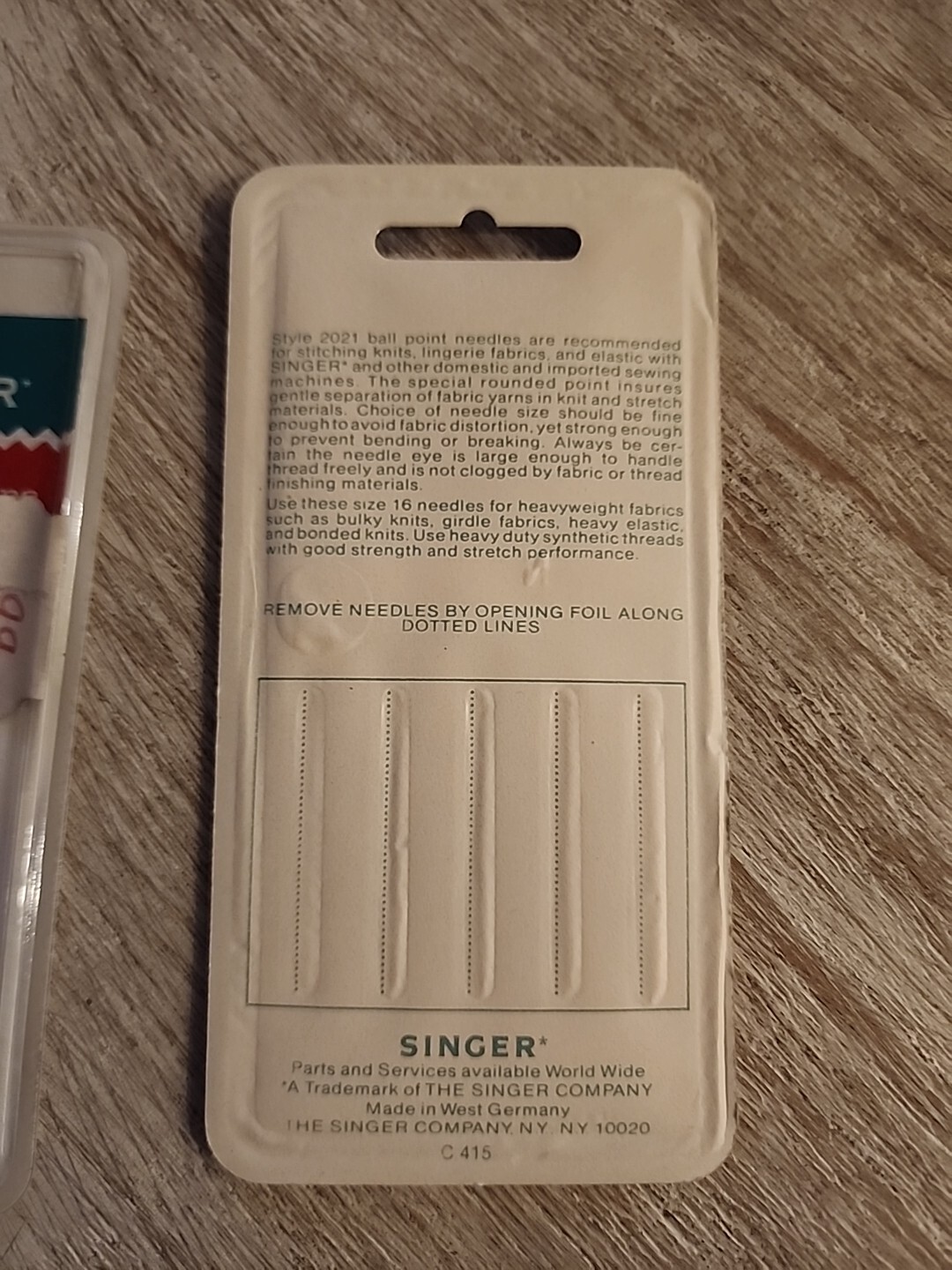 2 Vintage Singer Ball Point Sewing Needles Style 2021 Size 16